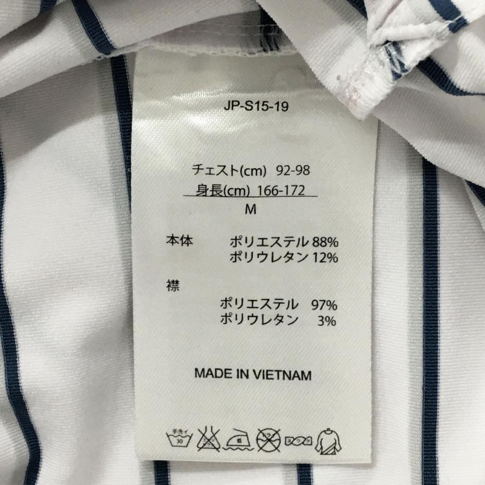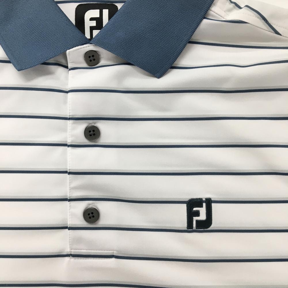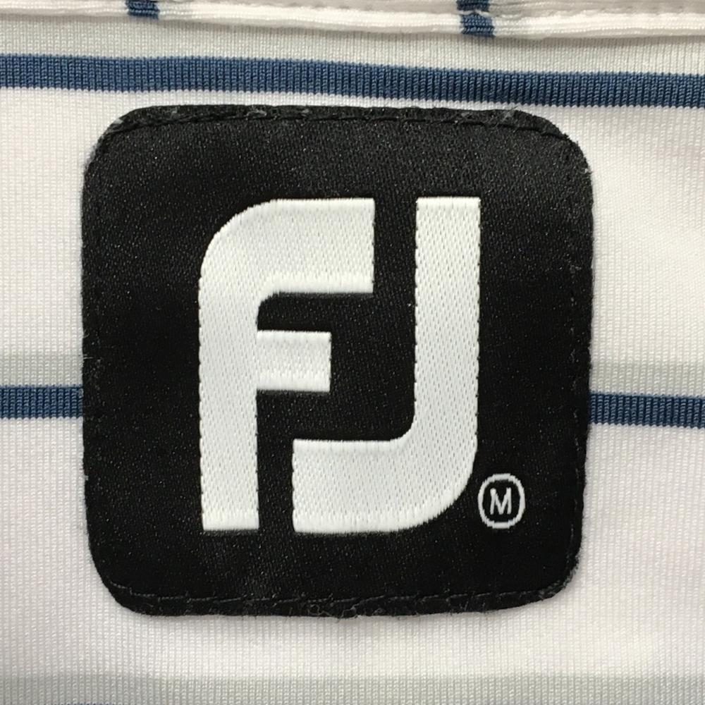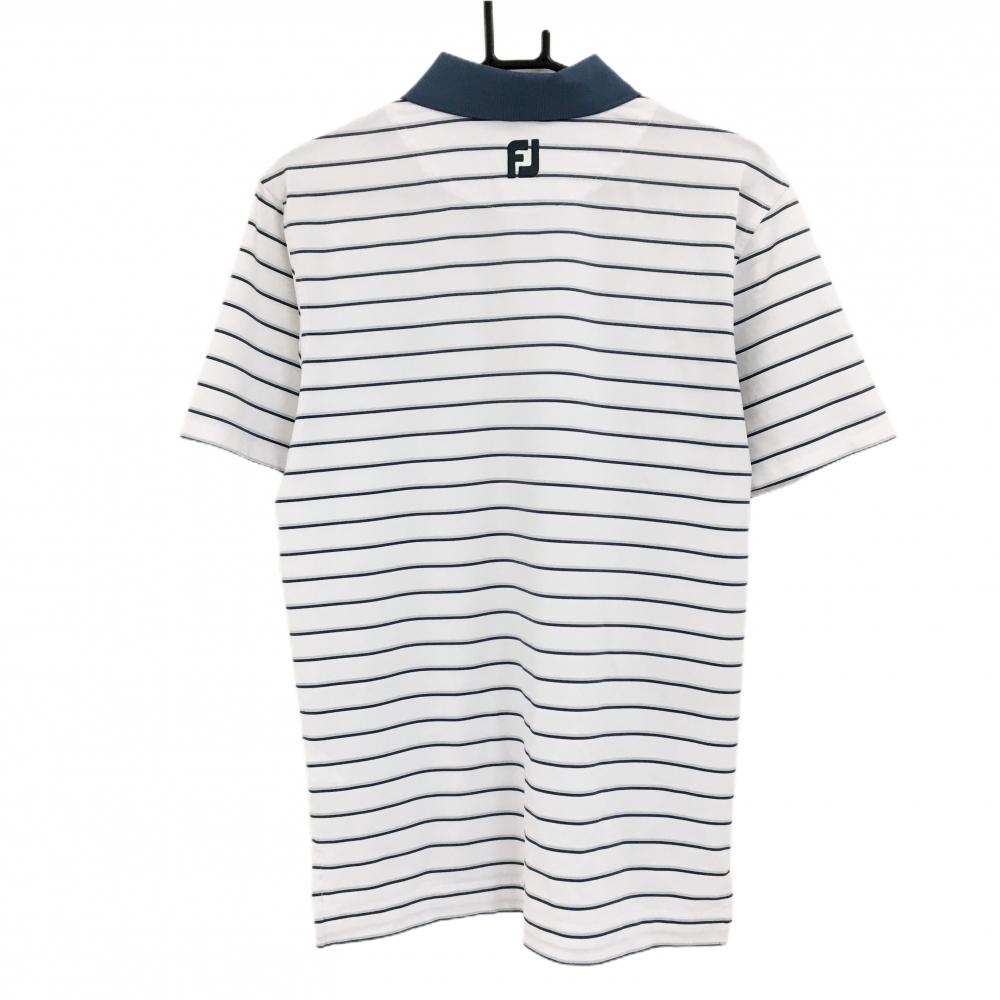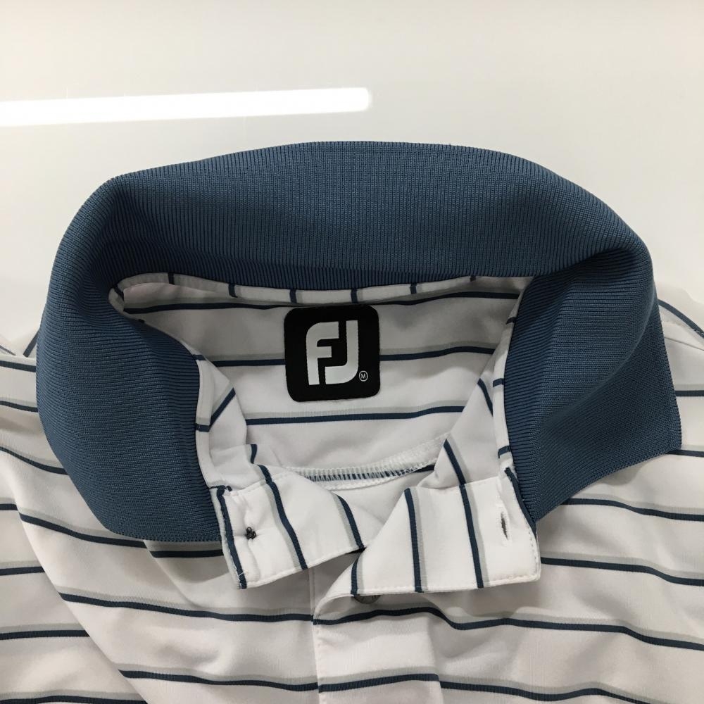 【美品】フットジョイ 半袖ポロシャツ 白×グリーン ボーダー メンズ M ゴルフウェア FootJoy