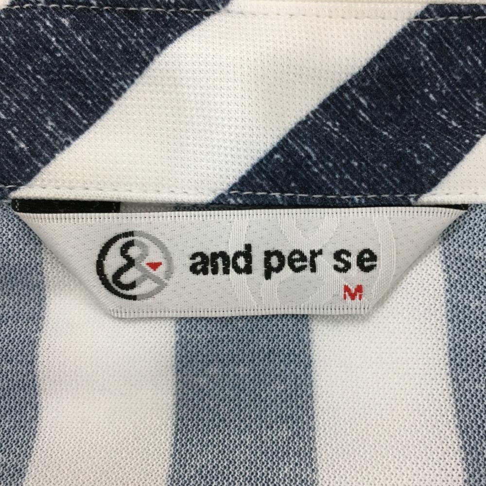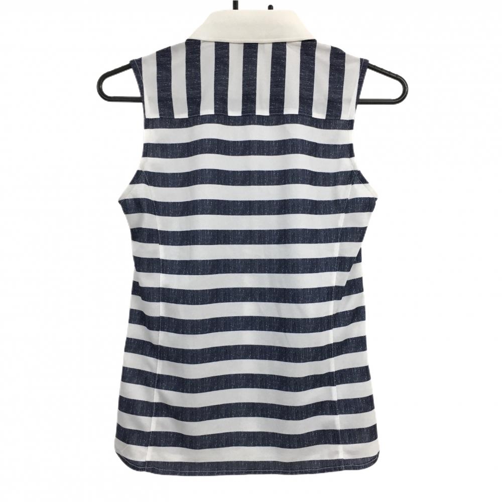 アンパスィ ノースリーブポロシャツ 白×ネイビー ボーダー レディース M ゴルフウェア and per se