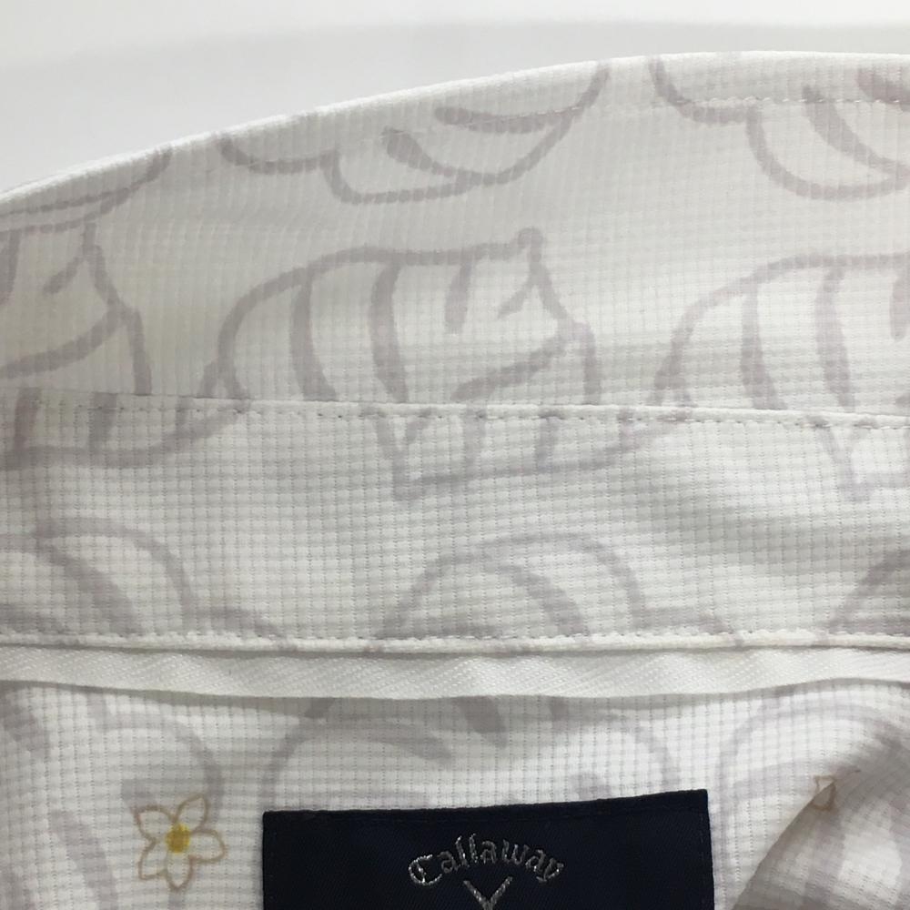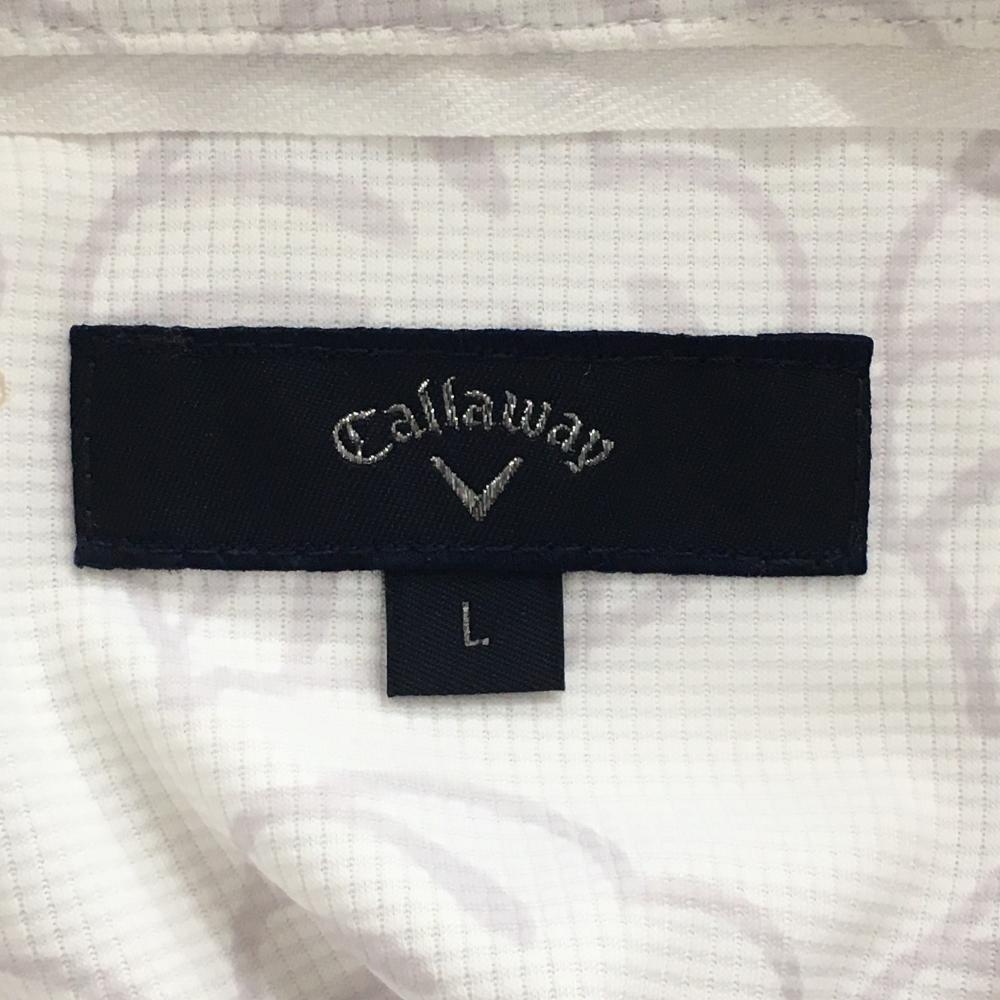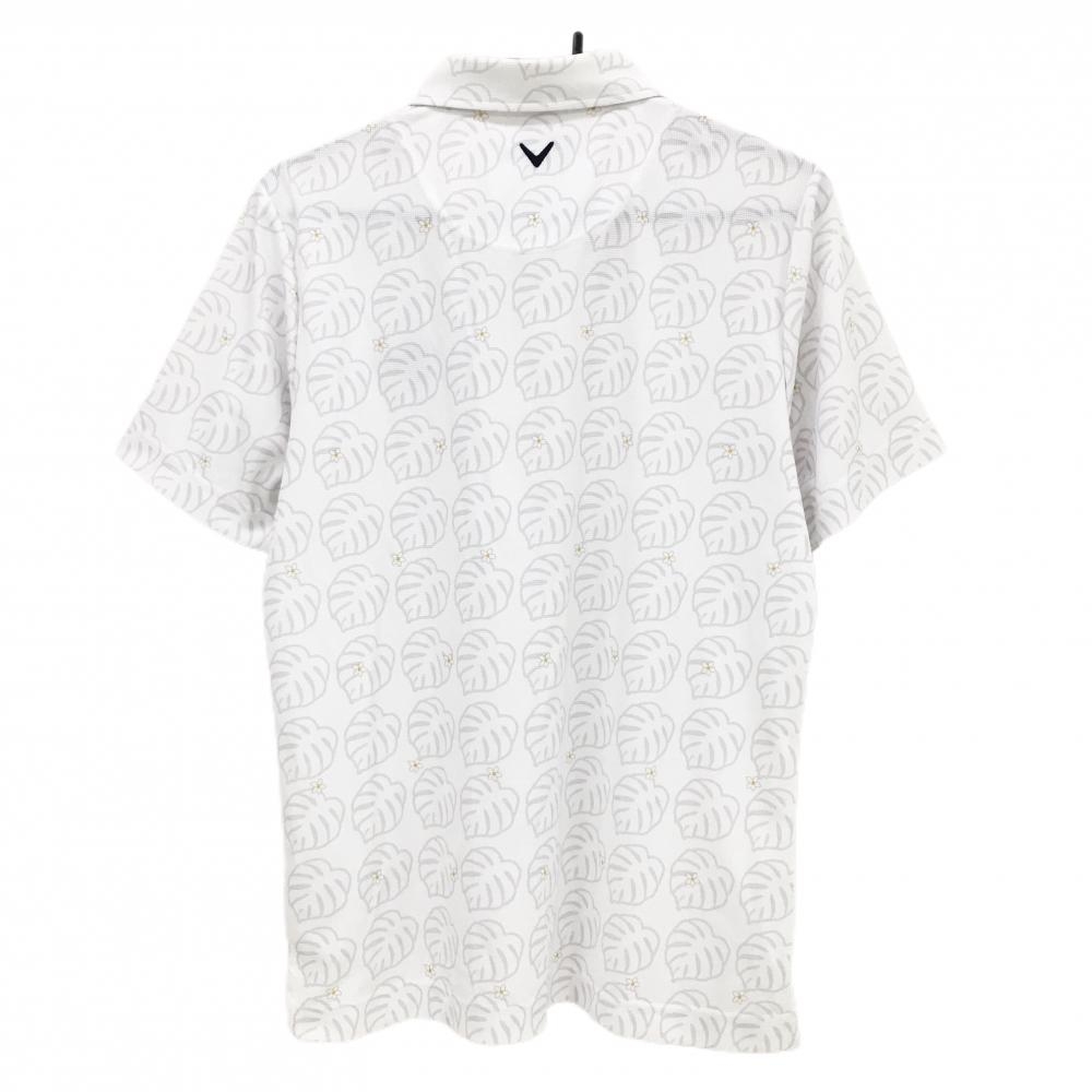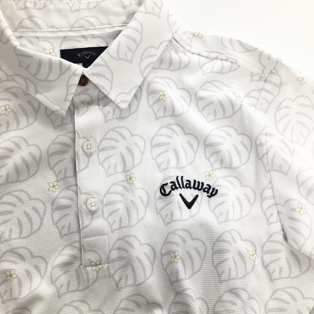 【美品】キャロウェイ 半袖ポロシャツ 白×グレー リーフ柄 小花柄 メンズ L ゴルフウェア Callaway