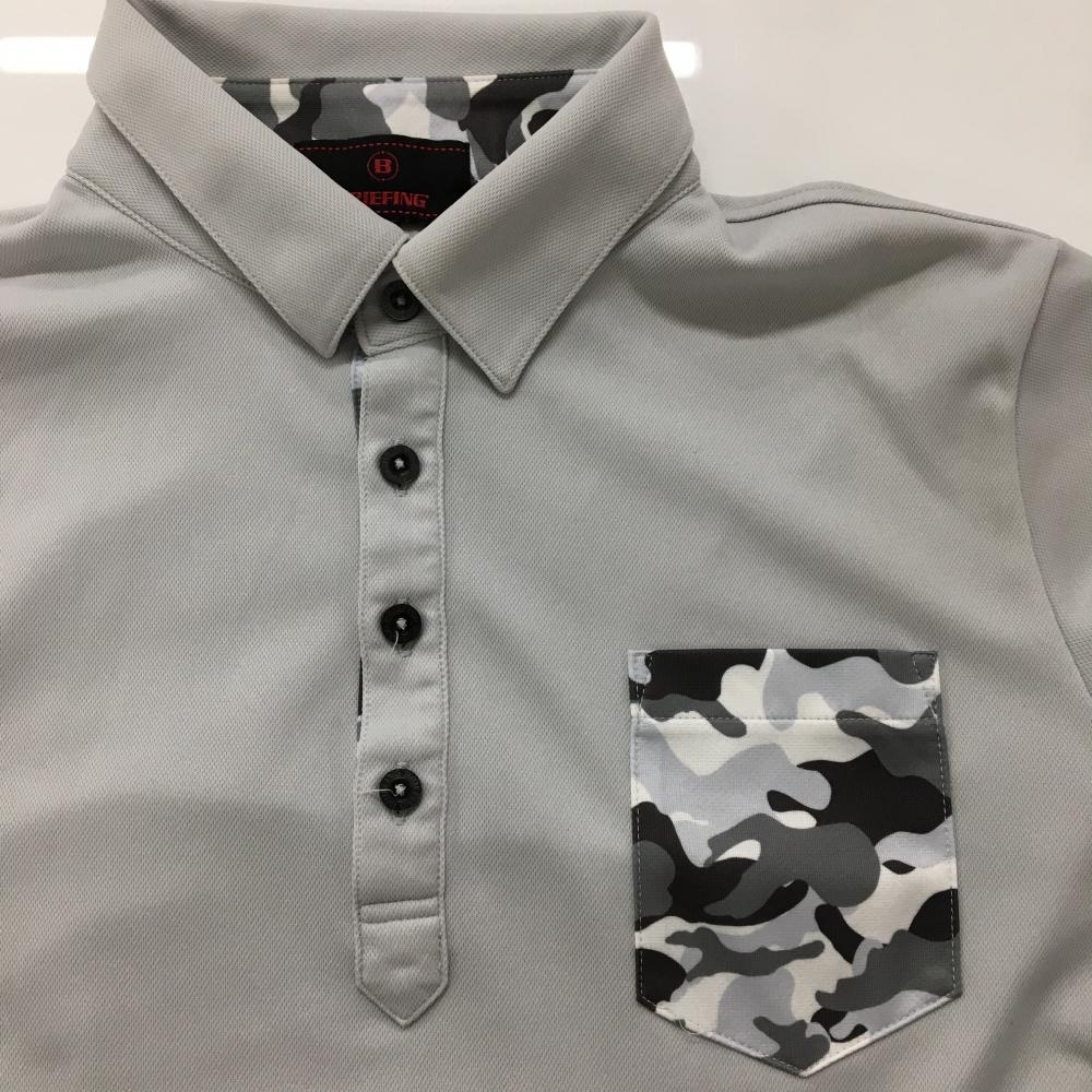 【超美品】ブリーフィング 半袖ポロシャツ ライトグレー ポケットカモフラ柄 迷彩 メンズ M ゴルフウェア BRIEFING