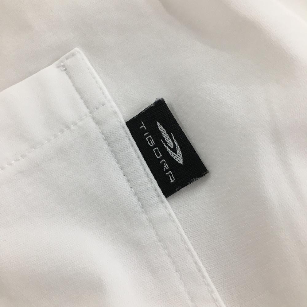 【超美品】ティゴラ 半袖シャツ 白 襟ハイネック 胸ポケット 速乾生地 メンズ L ゴルフウェア TIGORA