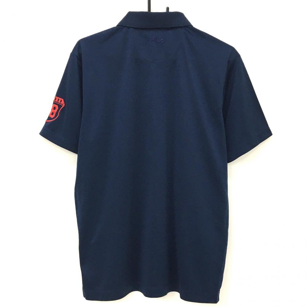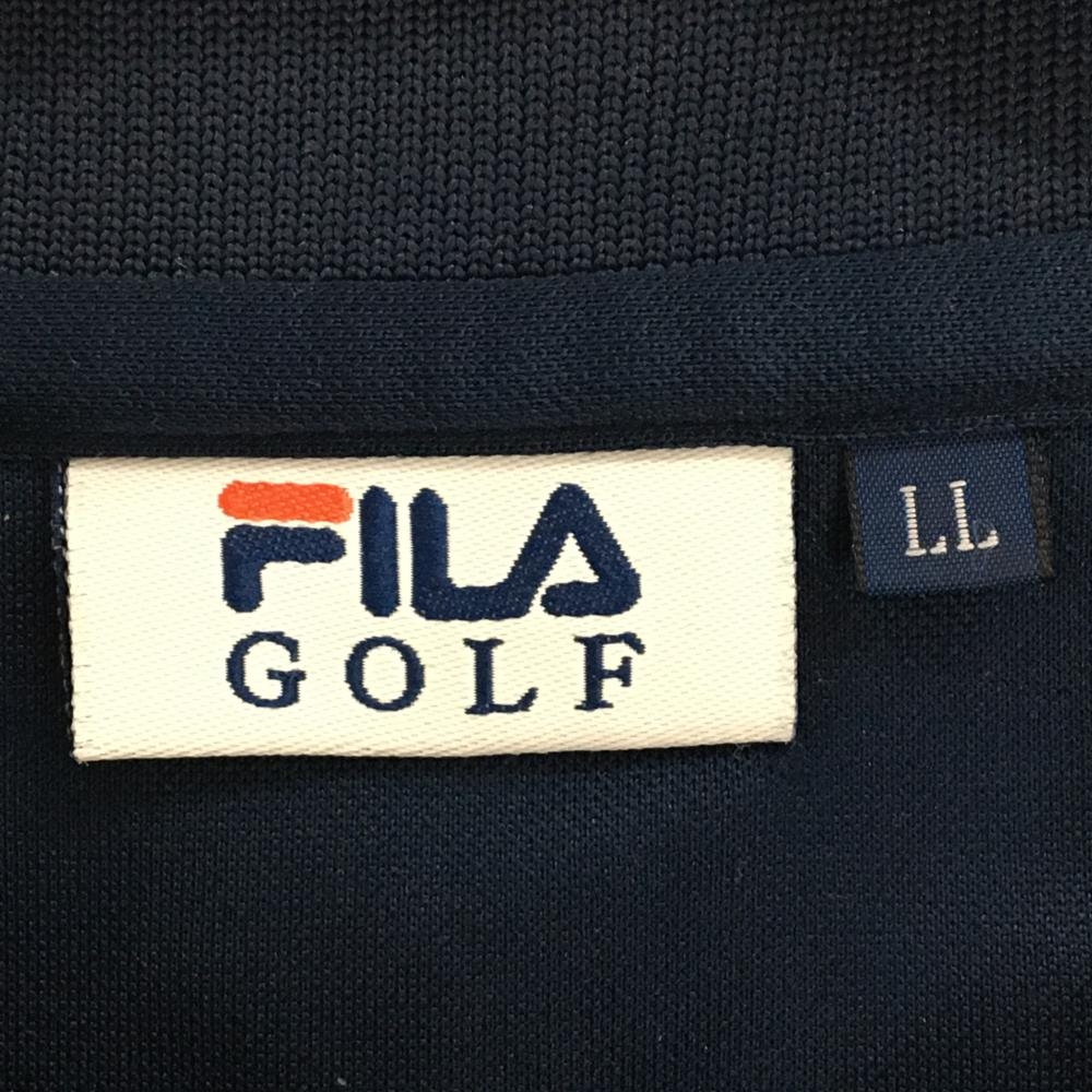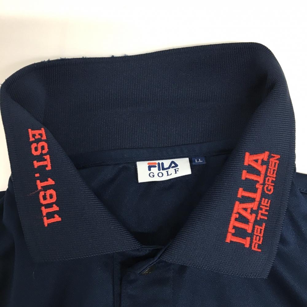 【美品】フィラゴルフ 半袖ポロシャツ ネイビー×レッド 襟・胸ロゴ刺しゅう メンズ LL ゴルフウェア FILA GOLF
