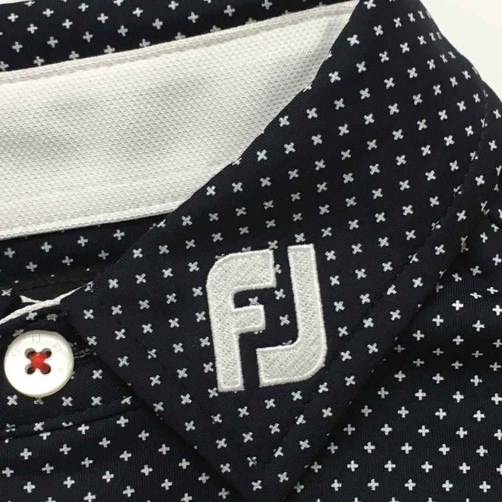 【超美品】フットジョイ 半袖ポロシャツ ダークネイビー×白 総柄 メンズ M ゴルフウェア FootJoy
