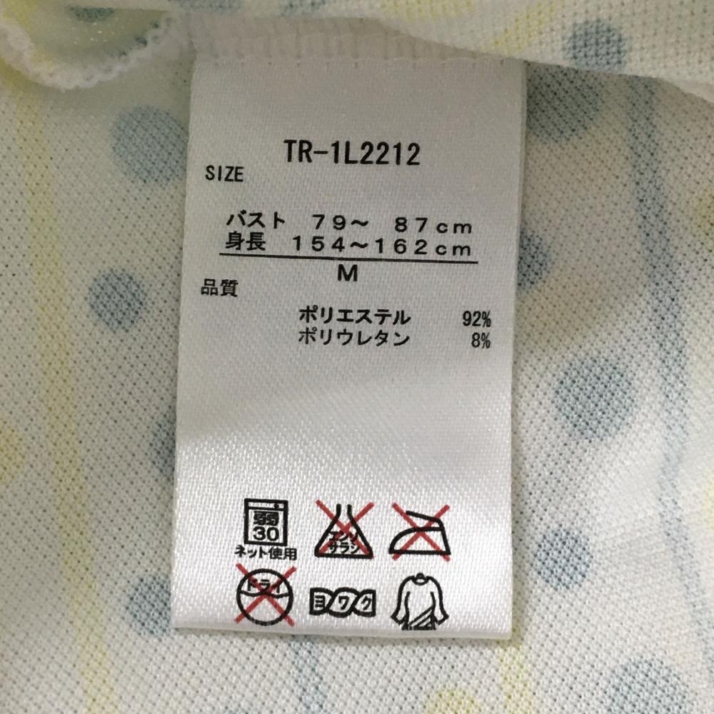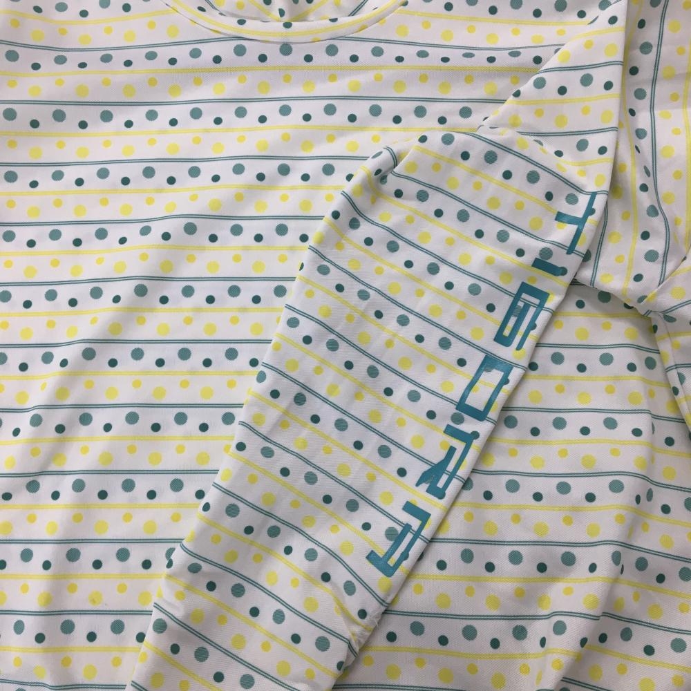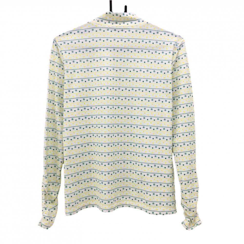 【超美品】ティゴラ 長袖ハイネックシャツ 白×グリーン×イエロー ボーダー ドット 袖シャーリング レディース M ゴルフウェア TIGORA
