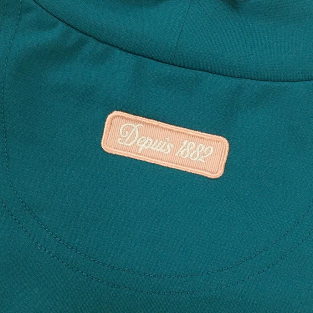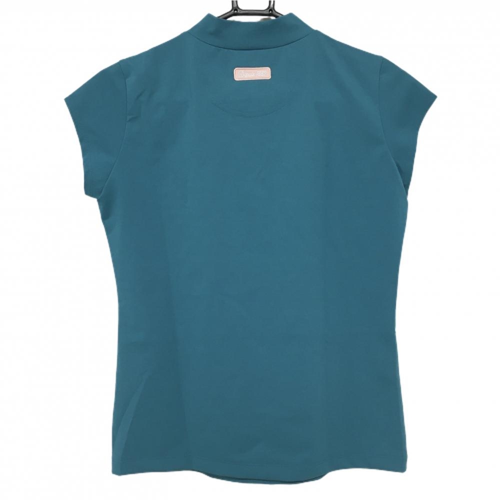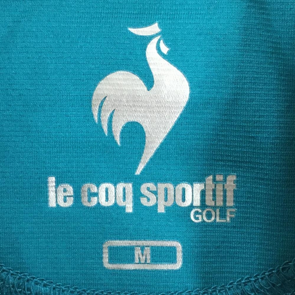 【超美品】ルコックゴルフ 半袖ハイネックシャツ グリーン×白×ピンク レディース M ゴルフウェア 2023年モデル le coq sportif