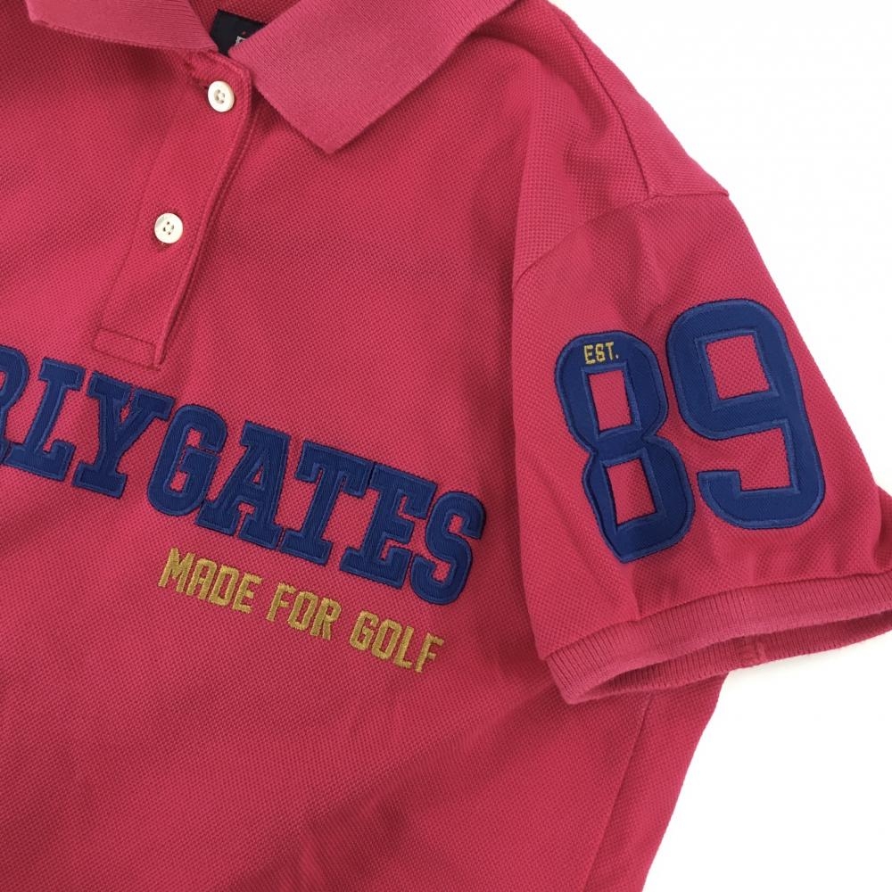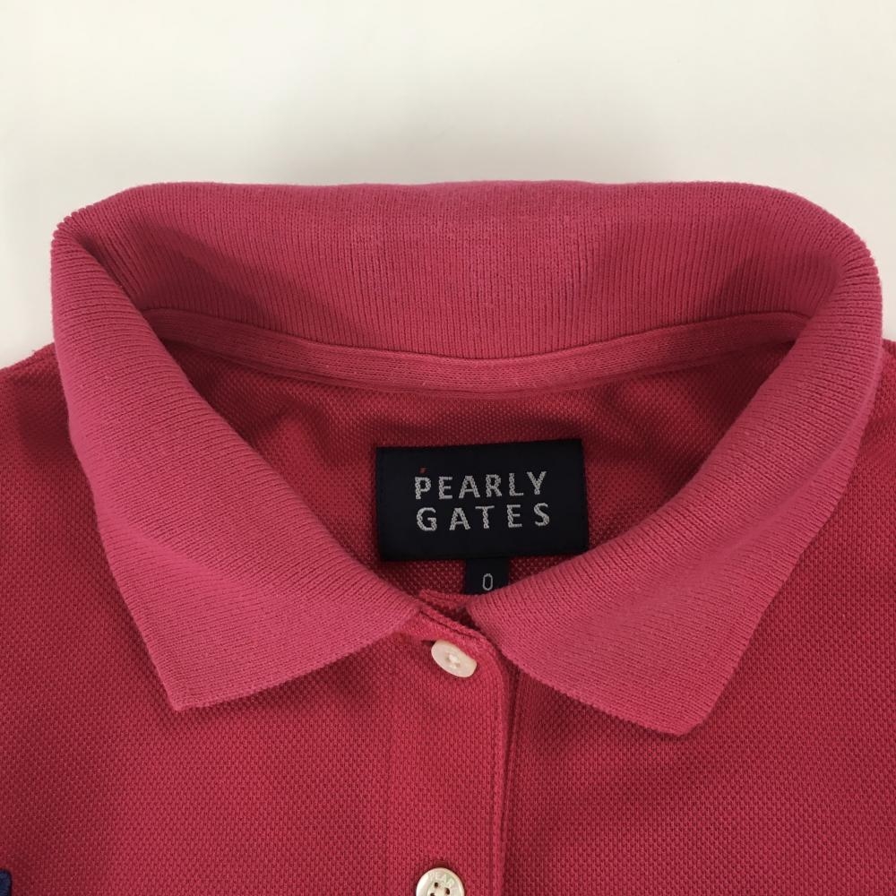 パーリーゲイツ 半袖ポロシャツ ダークピンク フロントロゴワッペン レディース 0(S) ゴルフウェア PEARLY GATES