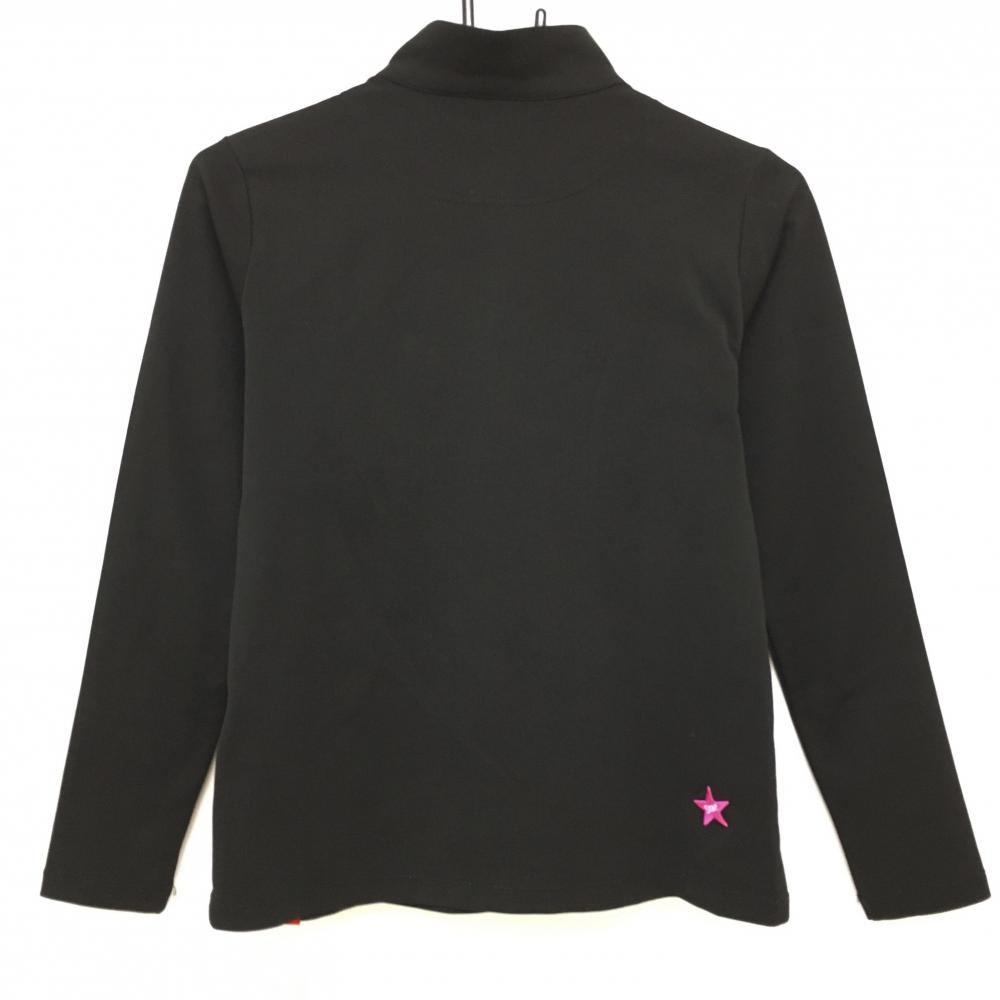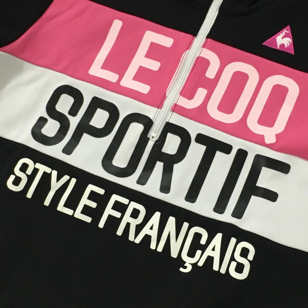 【美品】ルコックゴルフ 長袖ハイネックシャツ 黒×ピンク ハーフジップ ビッグロゴ レディース M ゴルフウェア le coq sportif