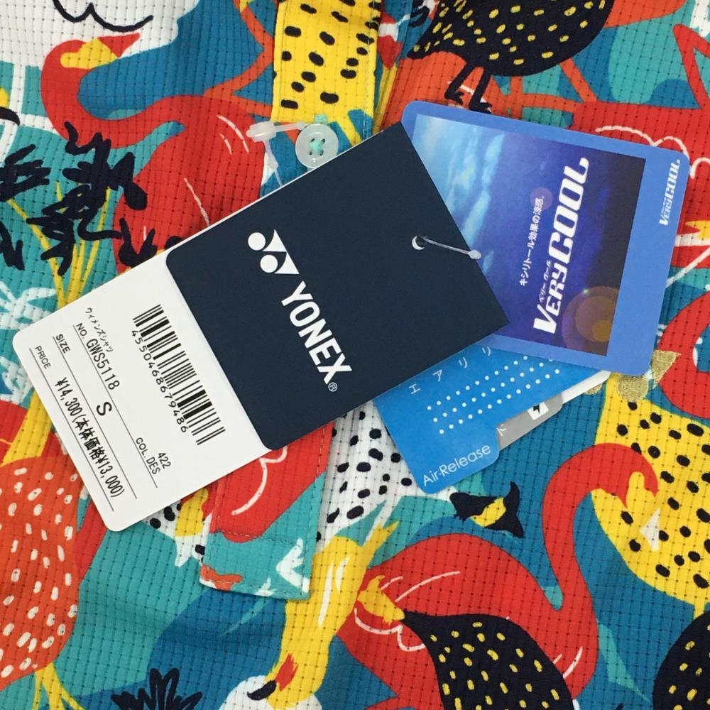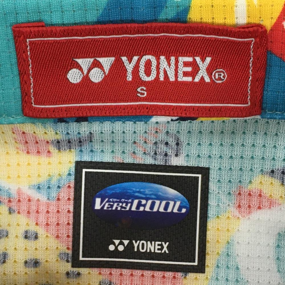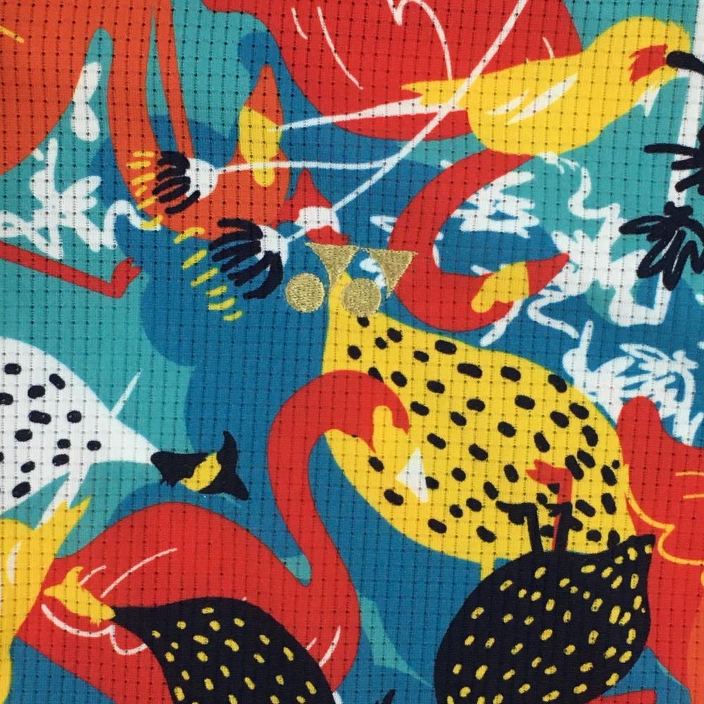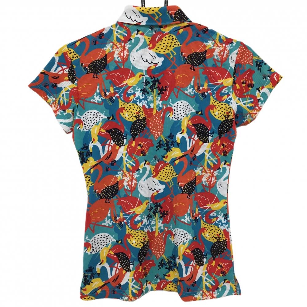 【新品】ヨネックス 半袖ポロシャツ ライトブルー×マルチカラー 総柄 フラミンゴ 鳥 レディース S ゴルフウェア 2024年モデル YONEX