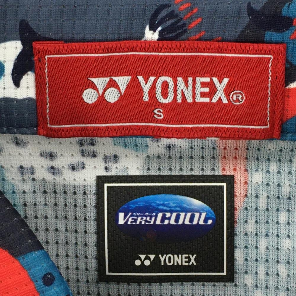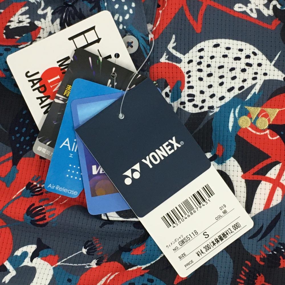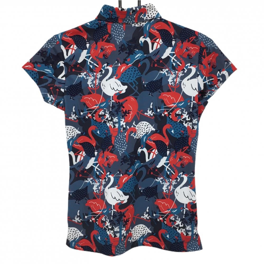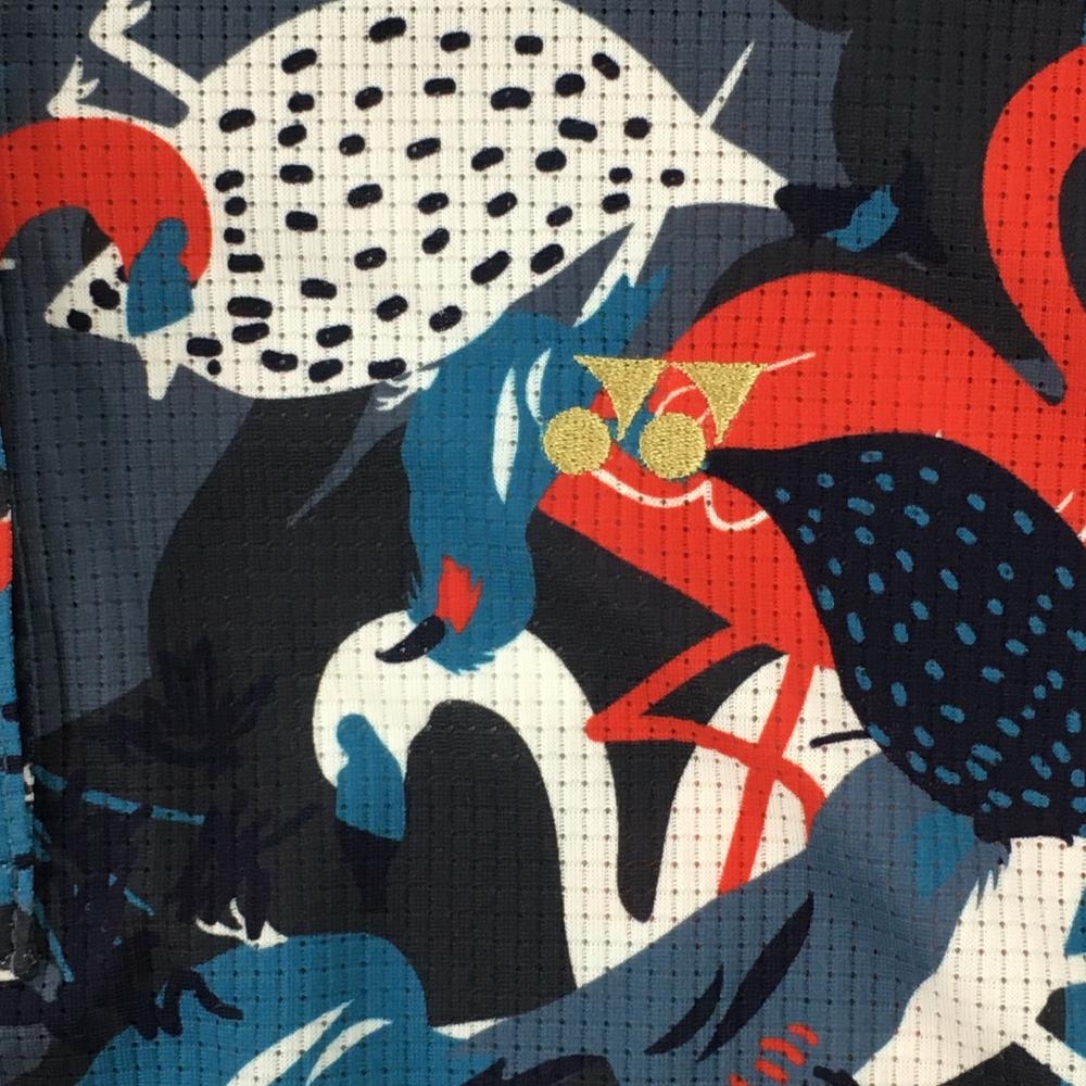 【新品】ヨネックス 半袖ポロシャツ ネイビー系×マルチカラー 総柄 フラミンゴ 鳥 レディース S ゴルフウェア 2024年モデル YONEX