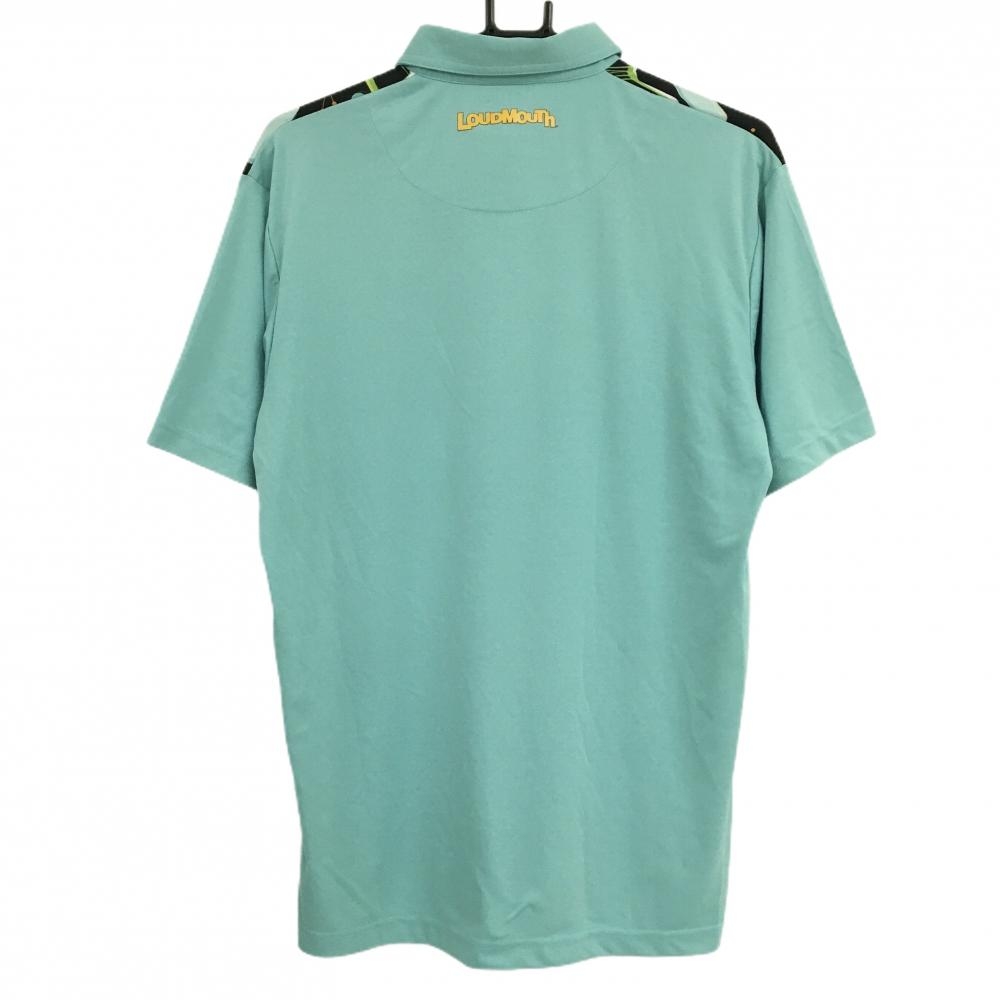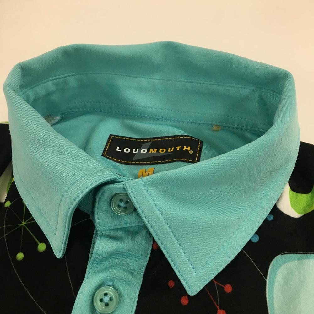 ラウドマウス 半袖ポロシャツ ライトブルー×黒 前身頃総柄 メンズ M ゴルフウェア LOUDMOUTH