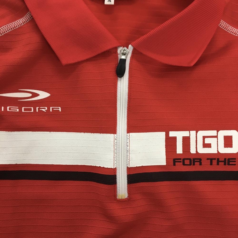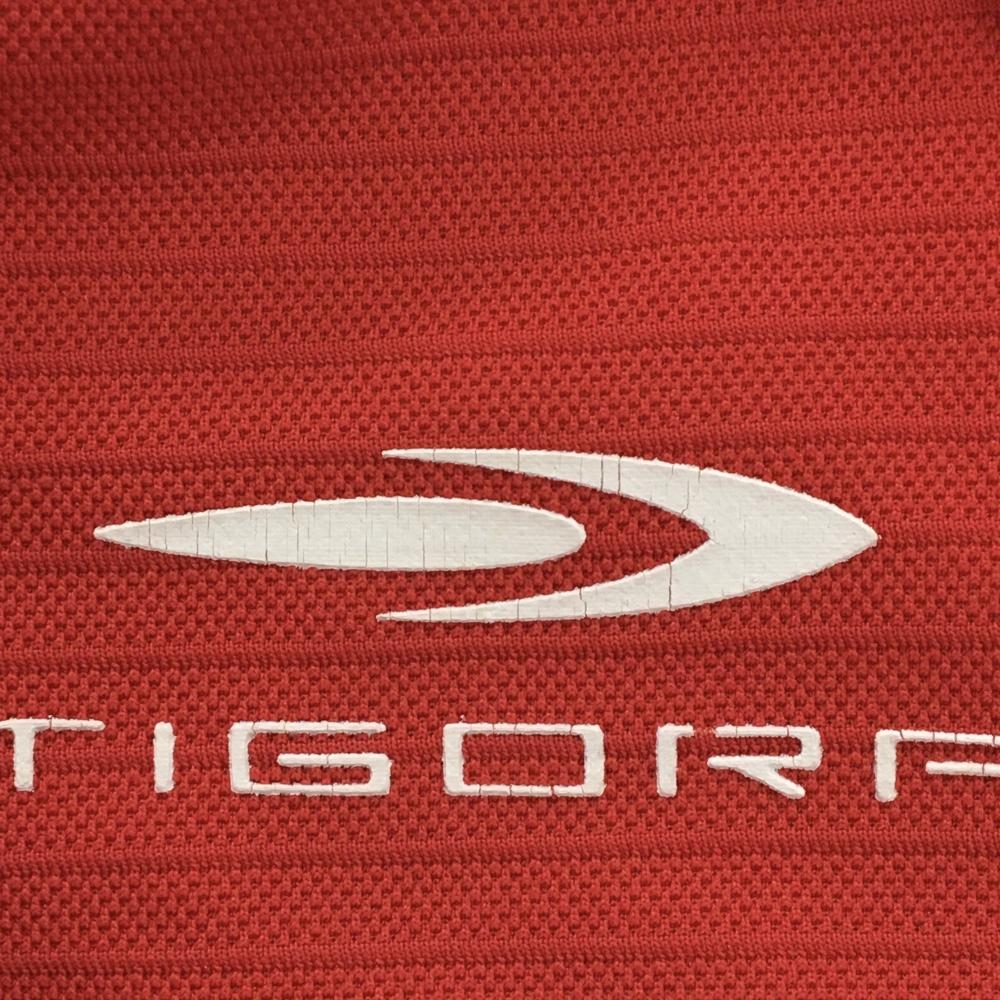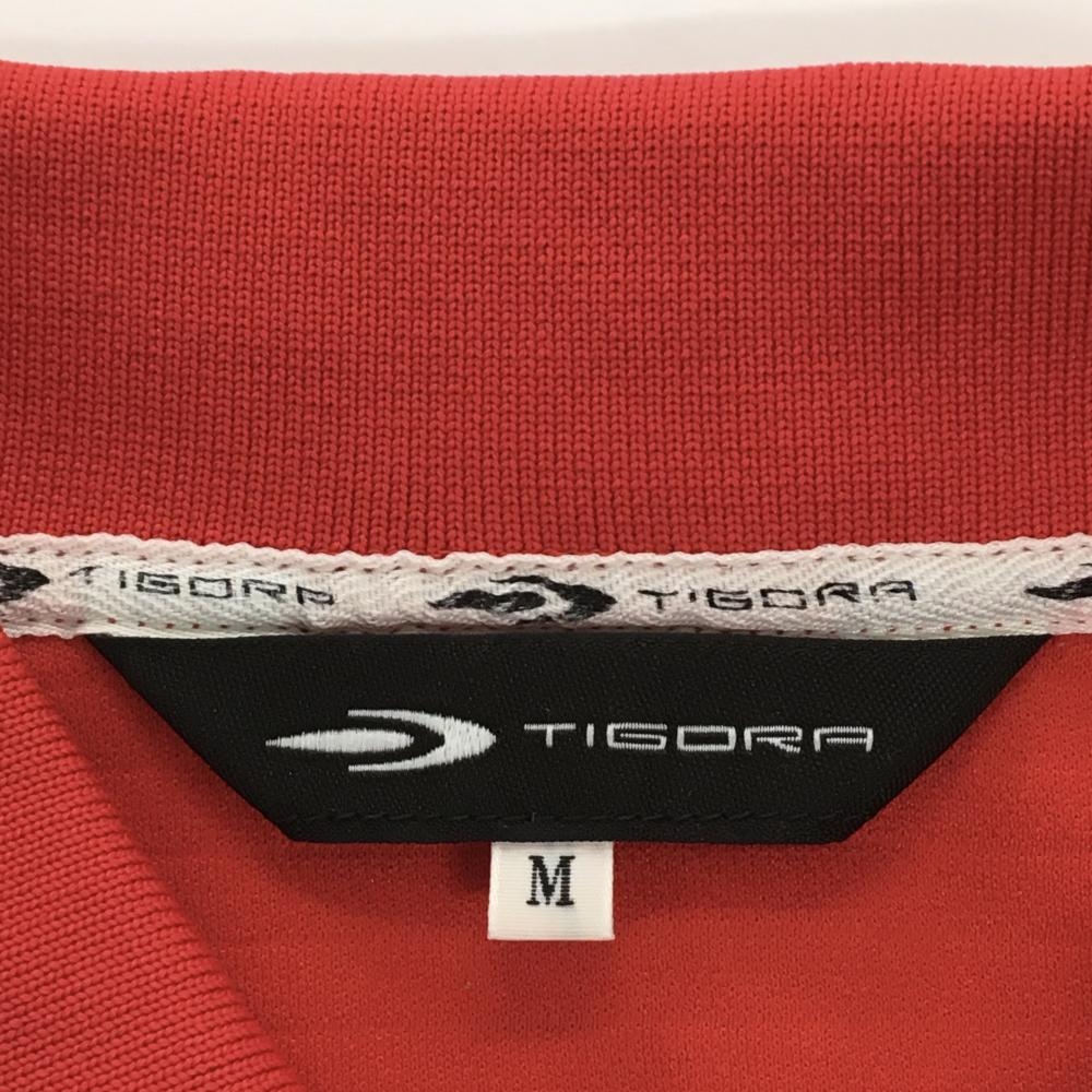 【美品】ティゴラ 半袖ポロシャツ レッド×白 ハーフジップ メンズ M ゴルフウェア TIGORA