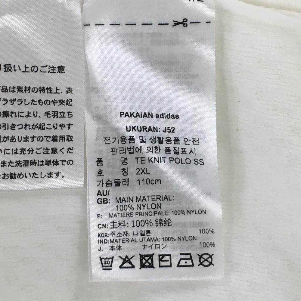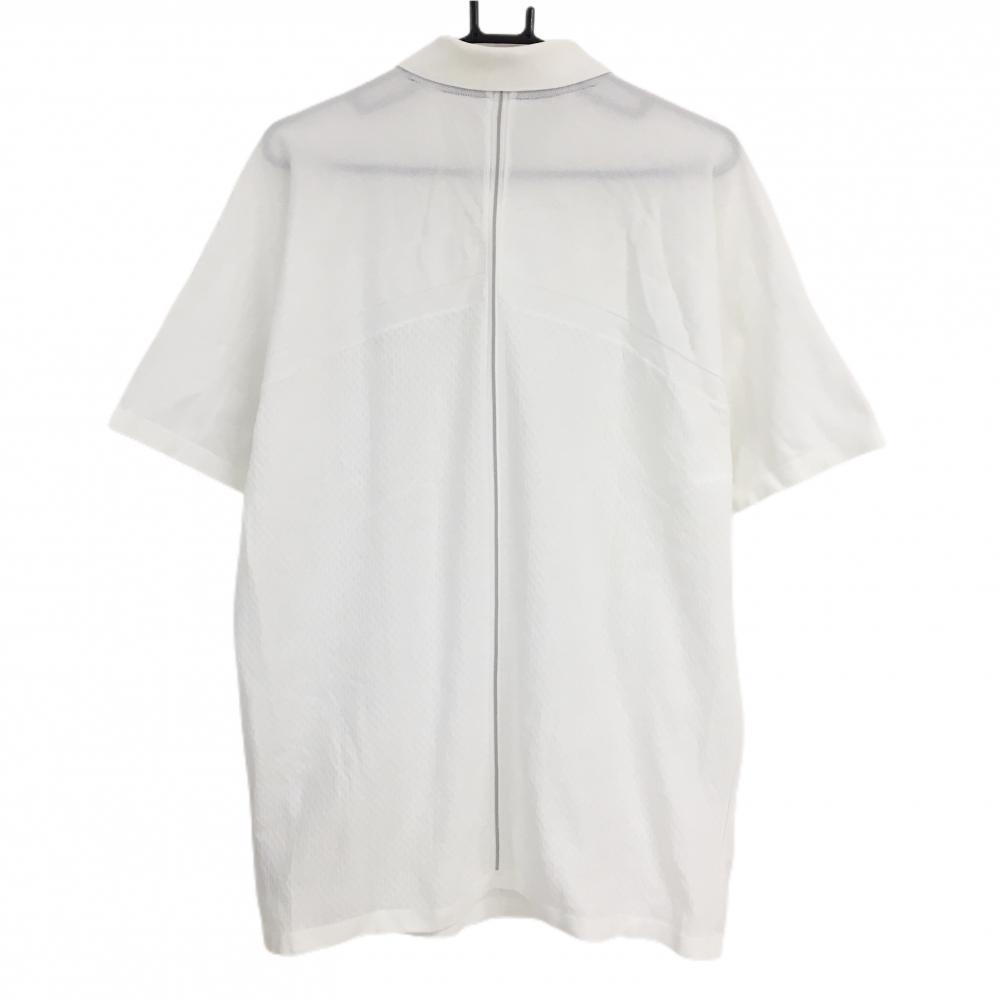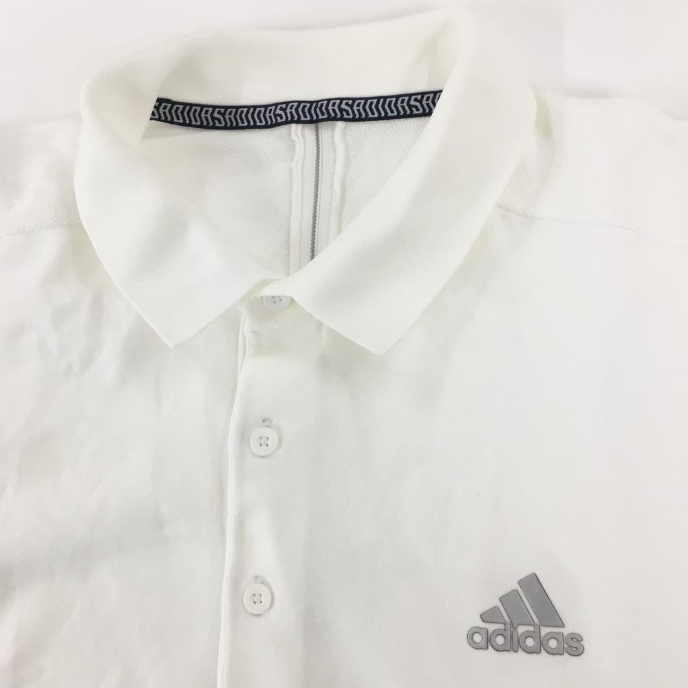 【美品】アディダス 半袖ポロシャツ 白 後凹凸生地 ロゴシルバー メンズ 2XL ゴルフウェア adidas