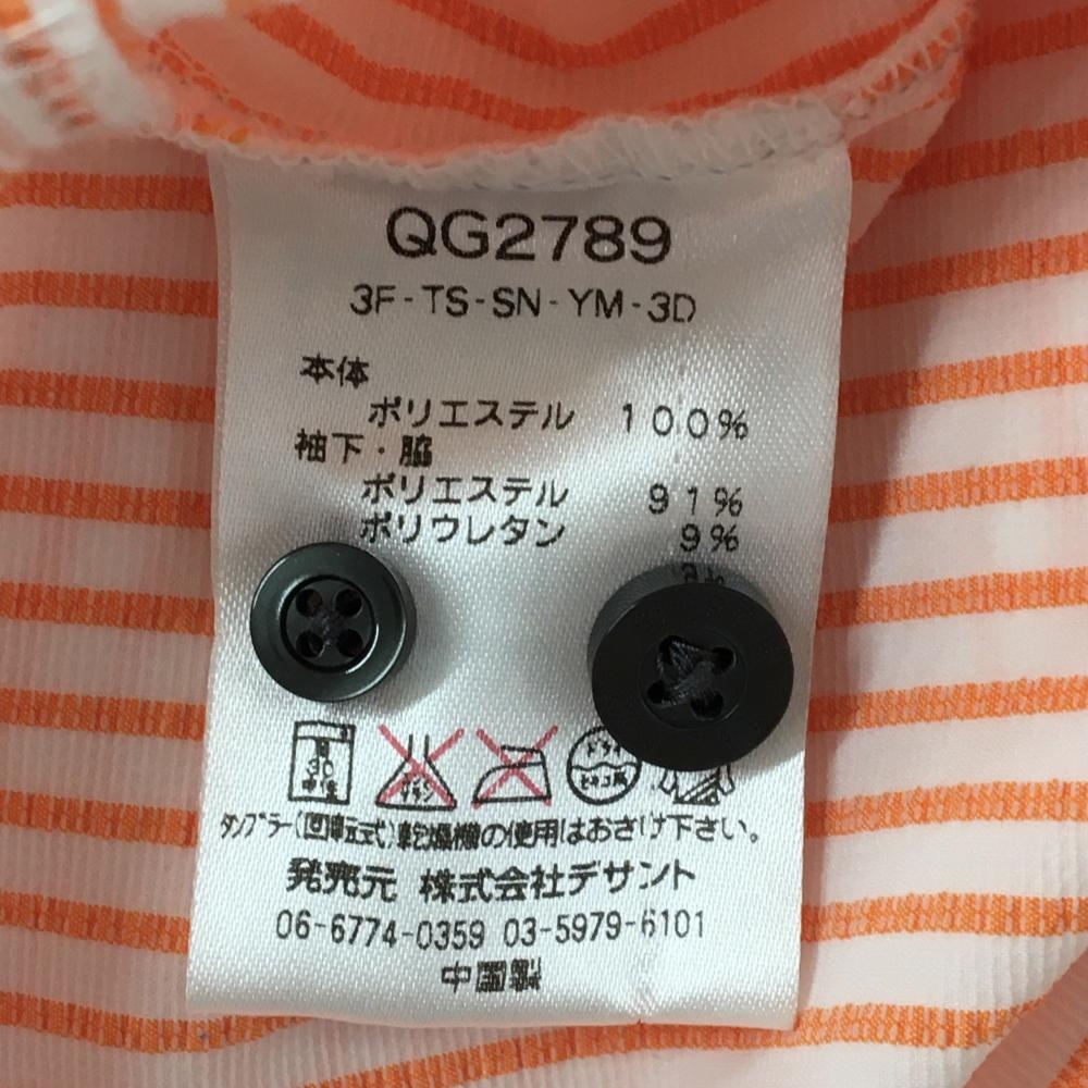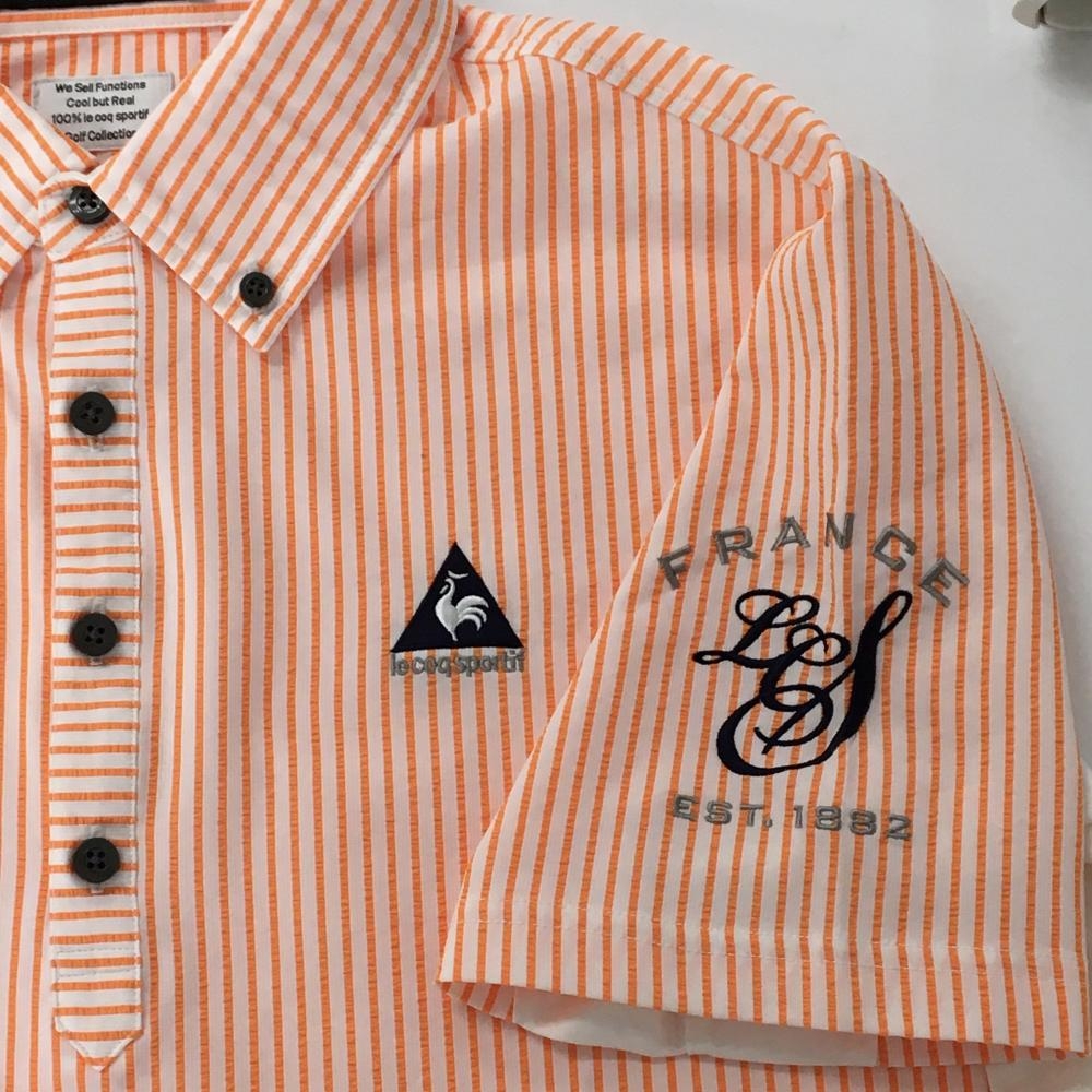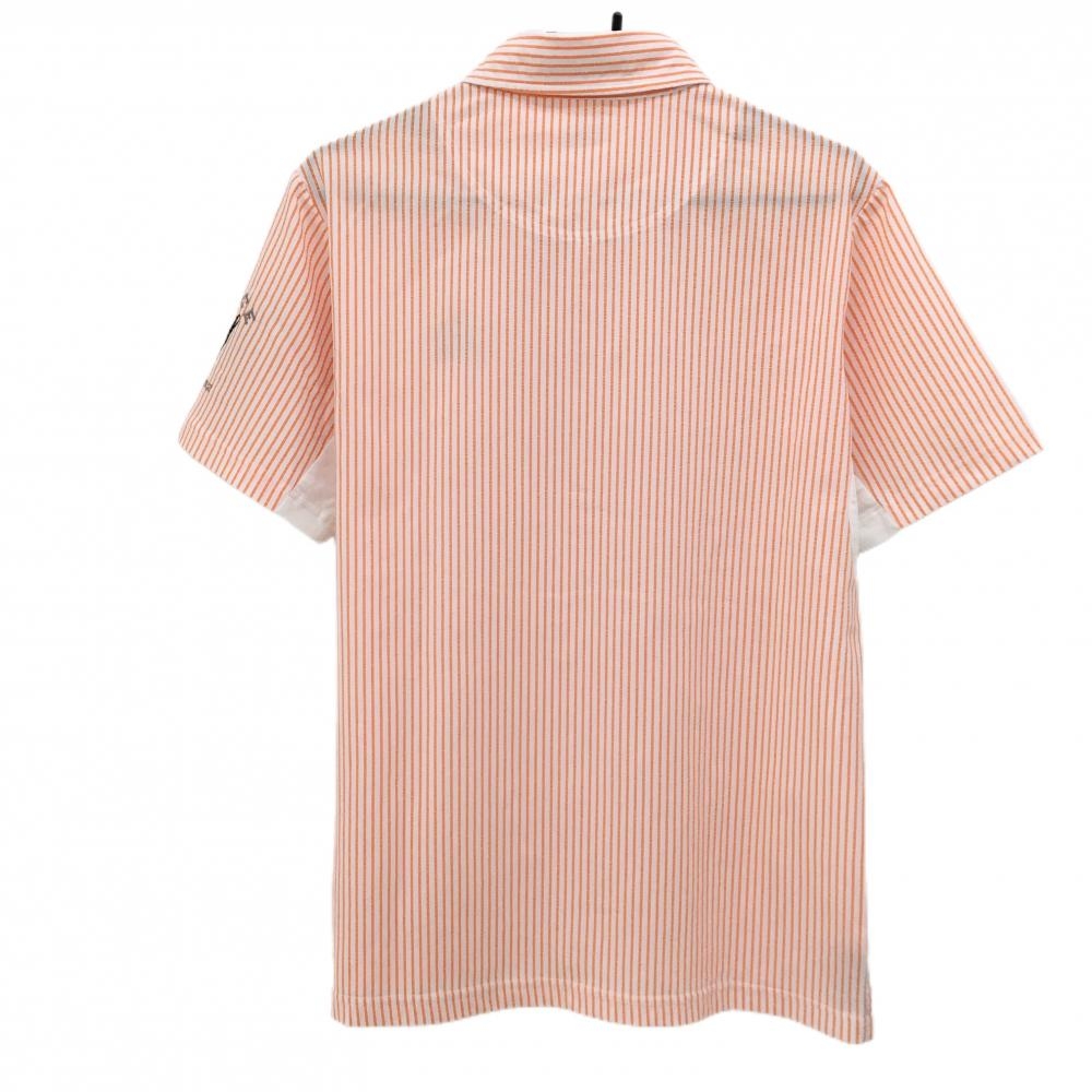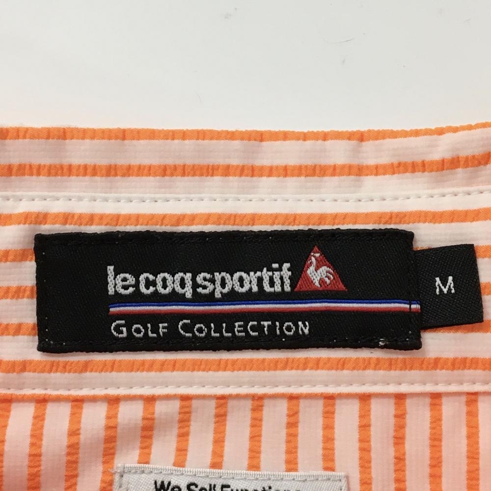 【超美品】ルコックゴルフ 半袖ポロシャツ 白×オレンジ ストライプ サッカー生地 ボタンダウン メンズ M ゴルフウェア le coq sportif