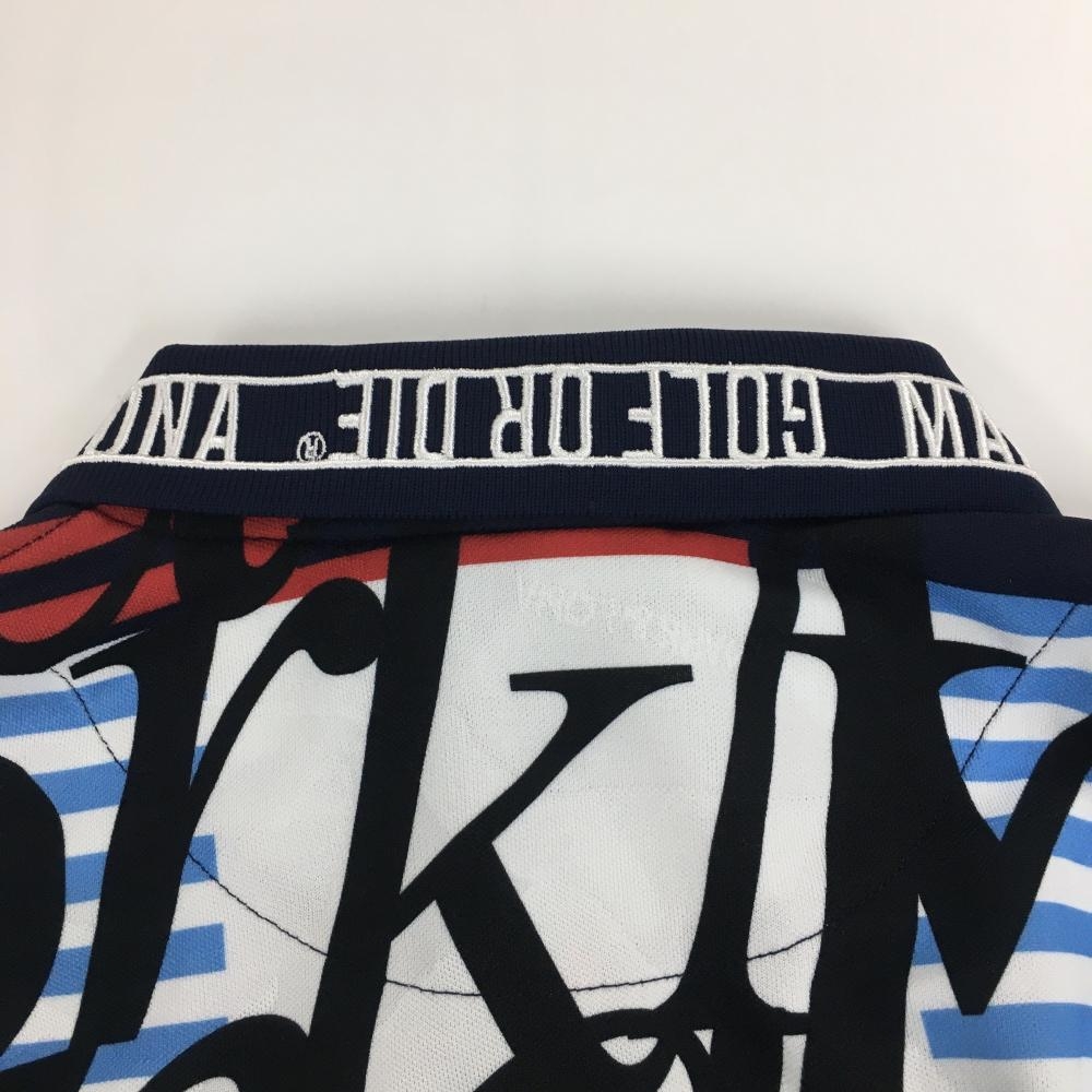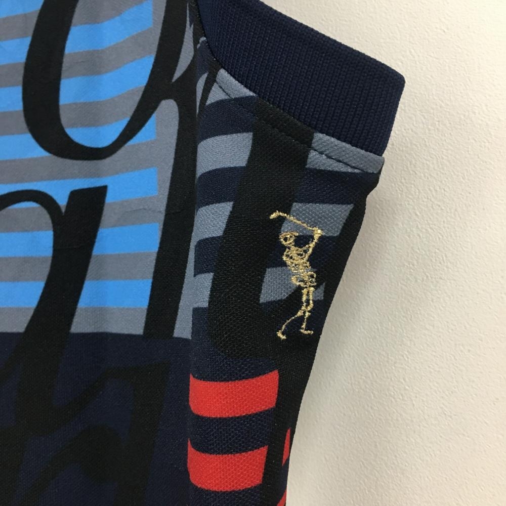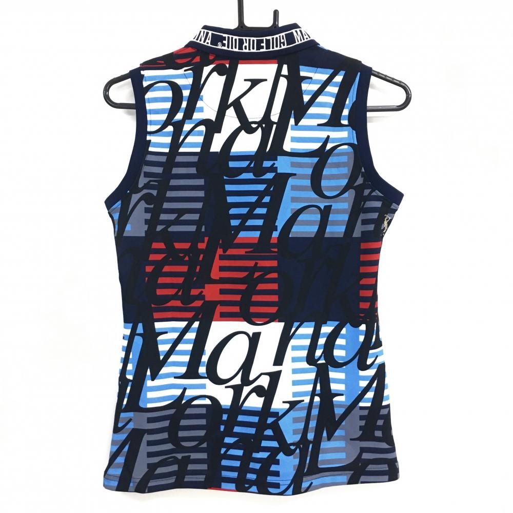 【超美品】マークアンドロナ ノースリーブポロシャツ ネイビー×レッド×ライトブルー ボーダー レディース 38(M) ゴルフウェア MARK&LONA