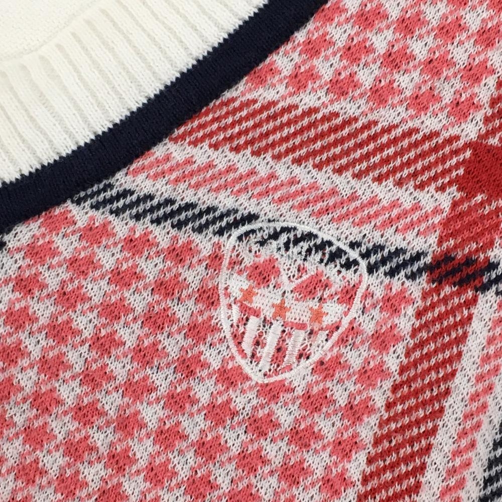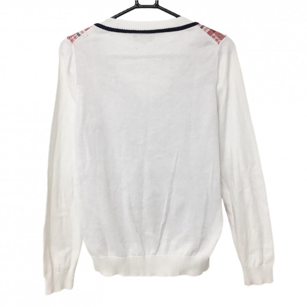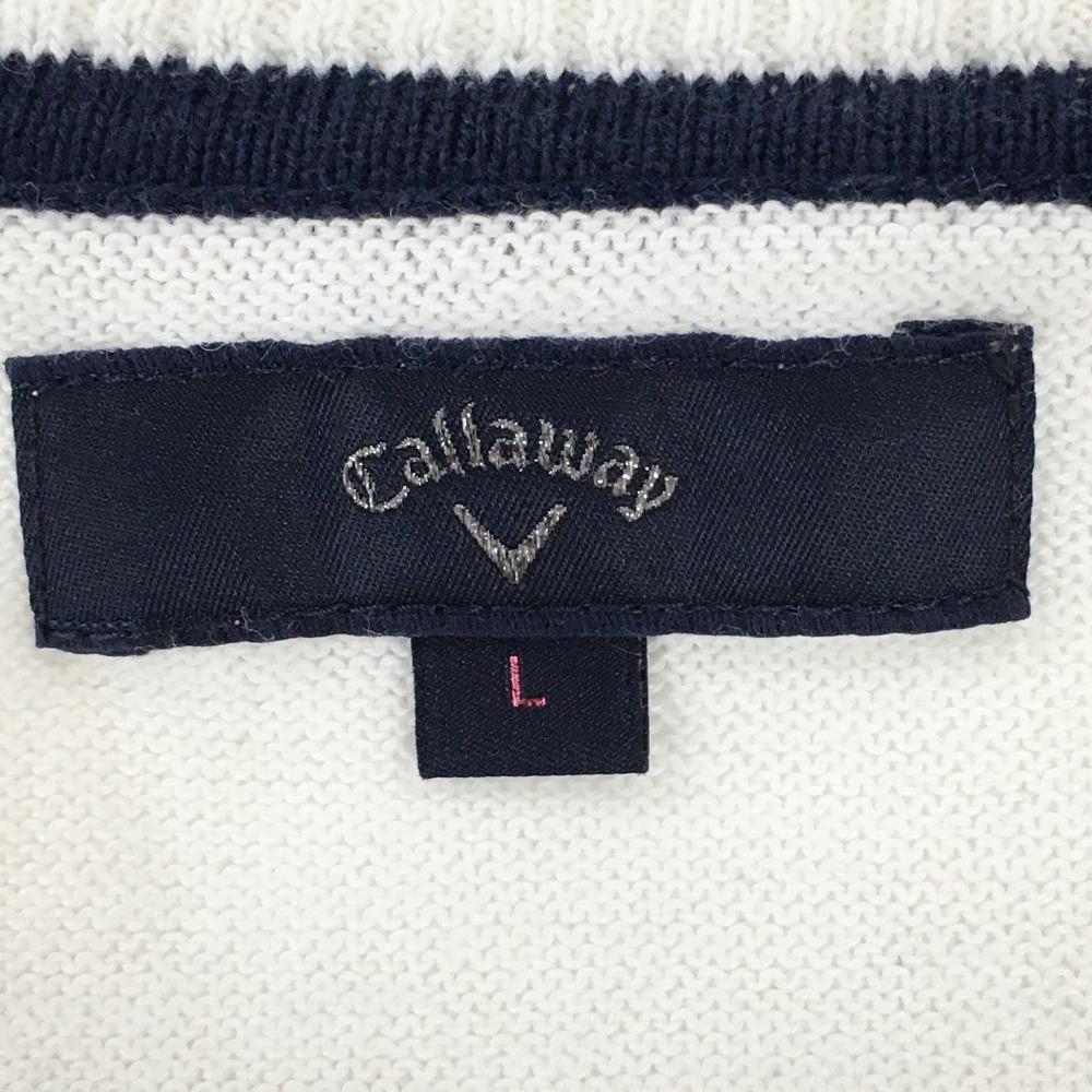 キャロウェイ セーター ピンク×白 前身頃千鳥格子 ニット Vネック コットン混 レディース L ゴルフウェア Callaway
