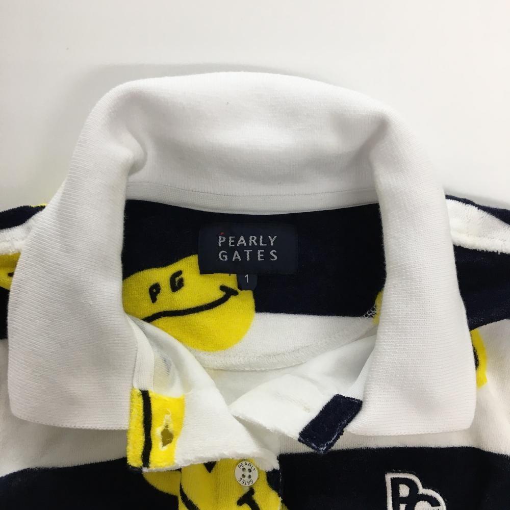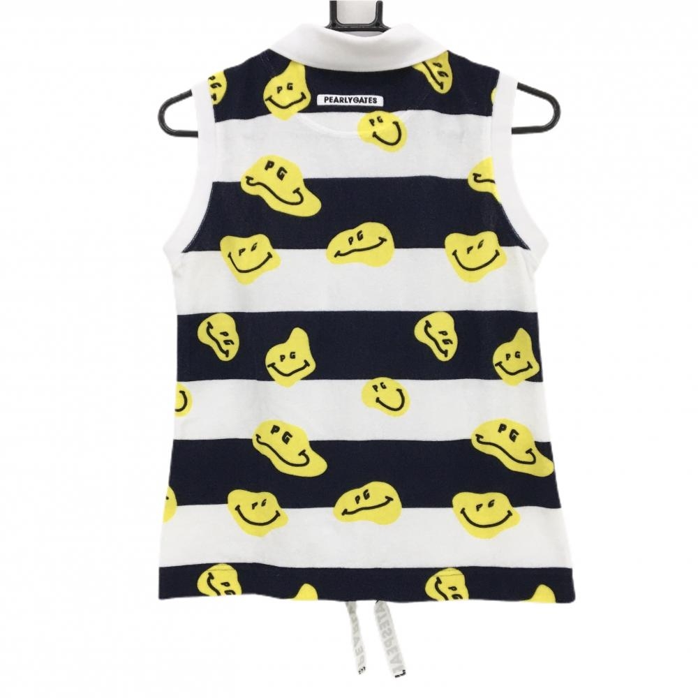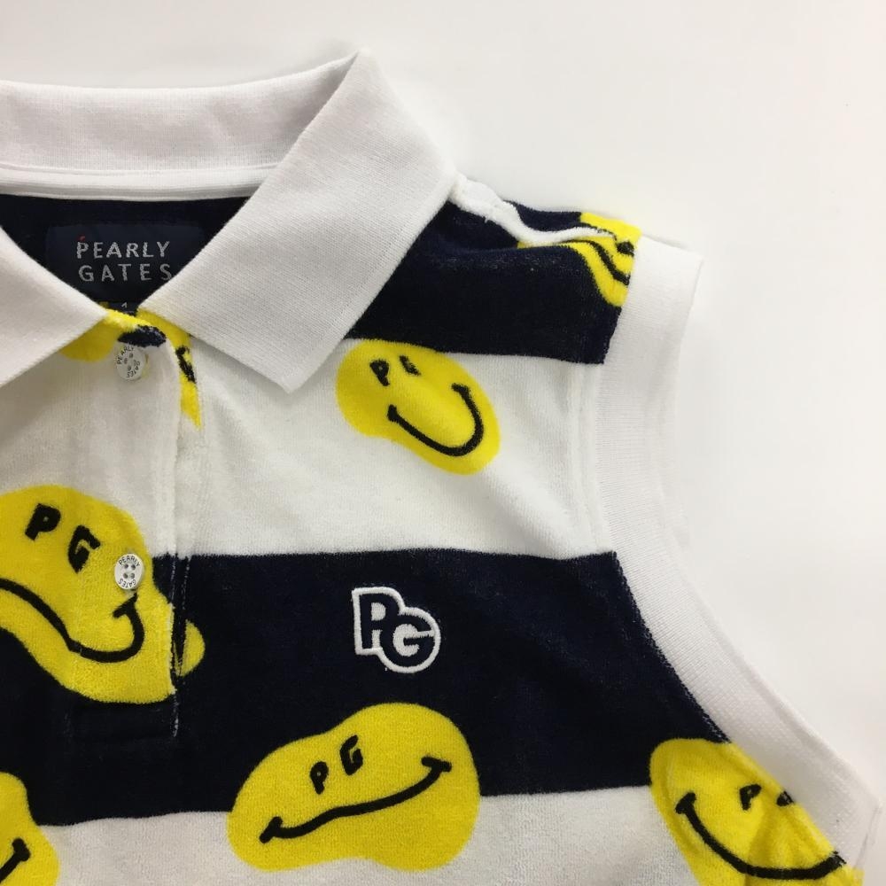 パーリーゲイツ ノースリーブポロシャツ 白×ネイビー×イエロー 太ボーダー ニコちゃん レディース 1(M) ゴルフウェア PEARLY GATES