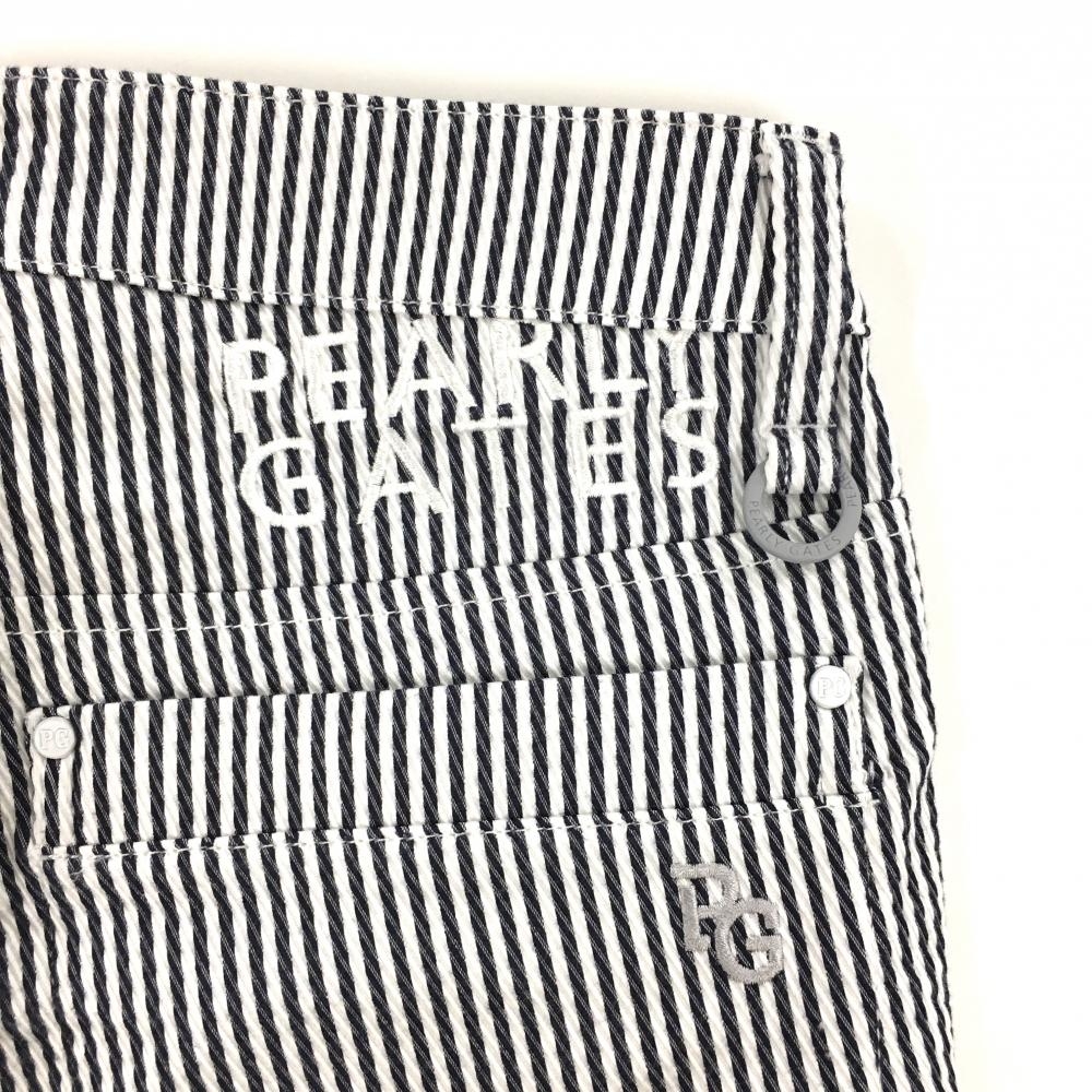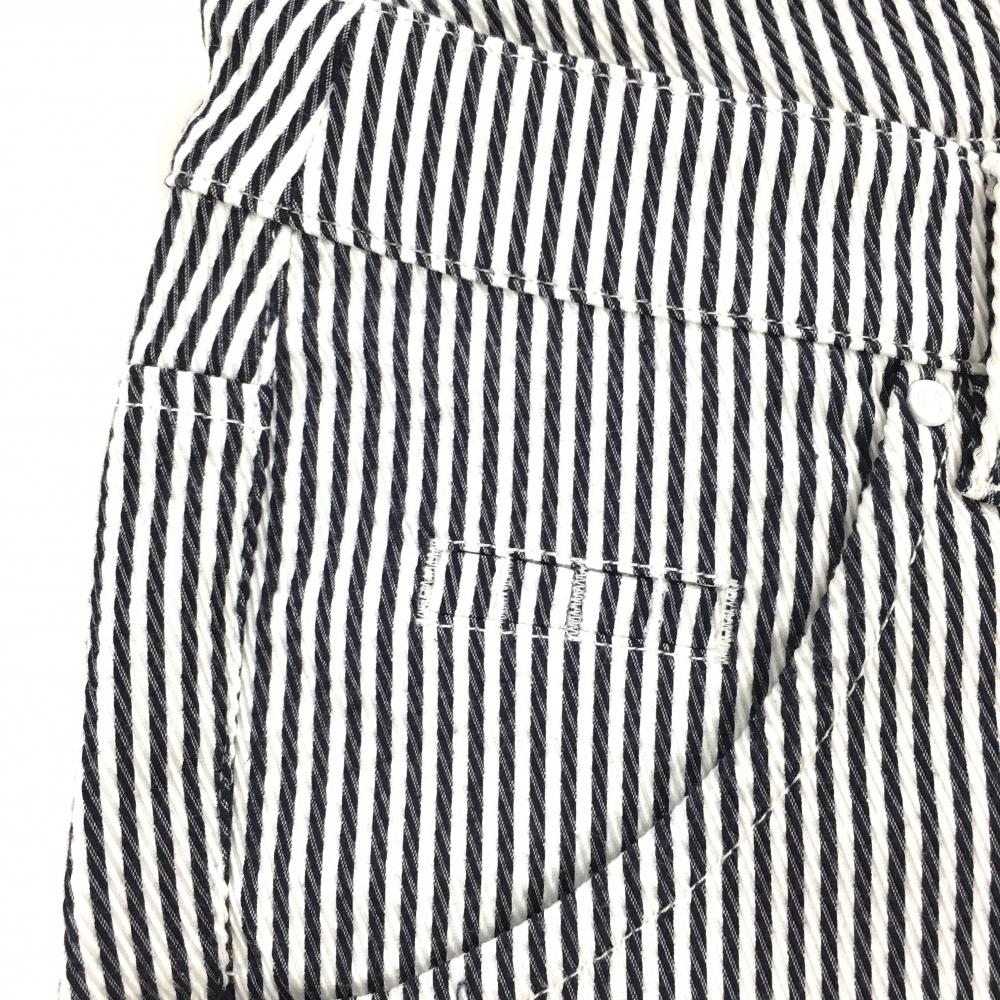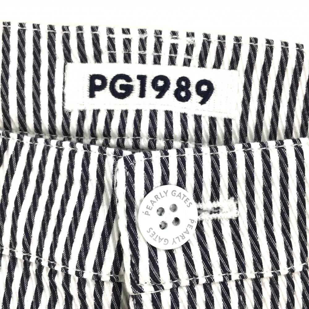 【美品】パーリーゲイツ パンツ 白×ネイビー ストライプ ティー装着可 レディース 1(M) ゴルフウェア 2023年モデル PEARLY GATES