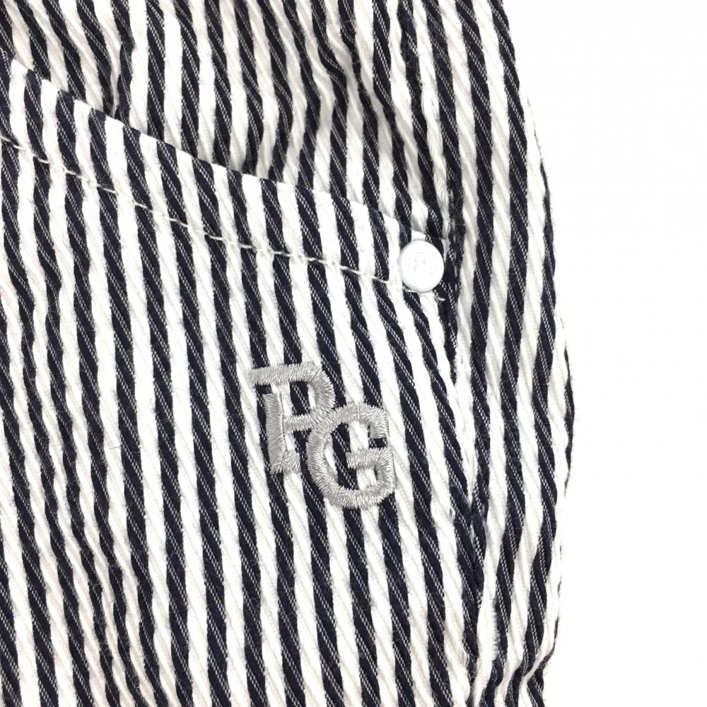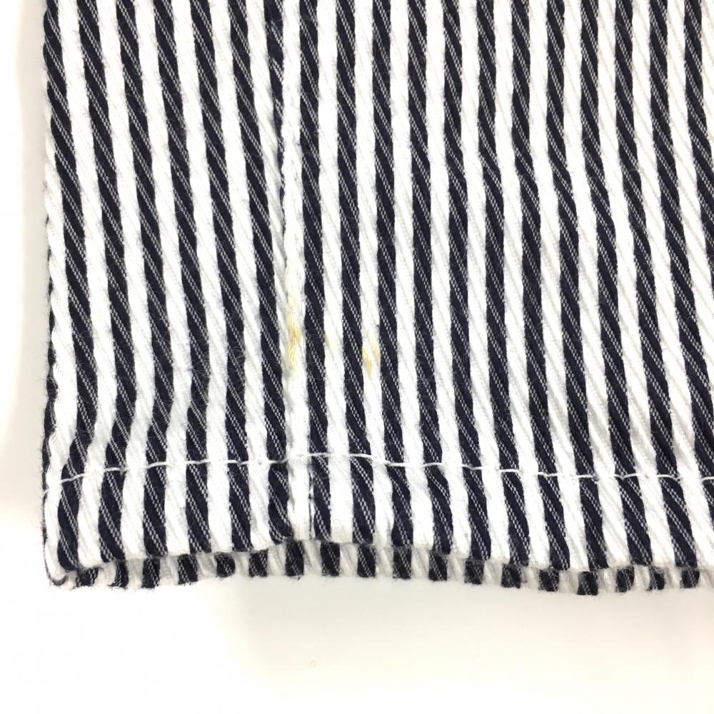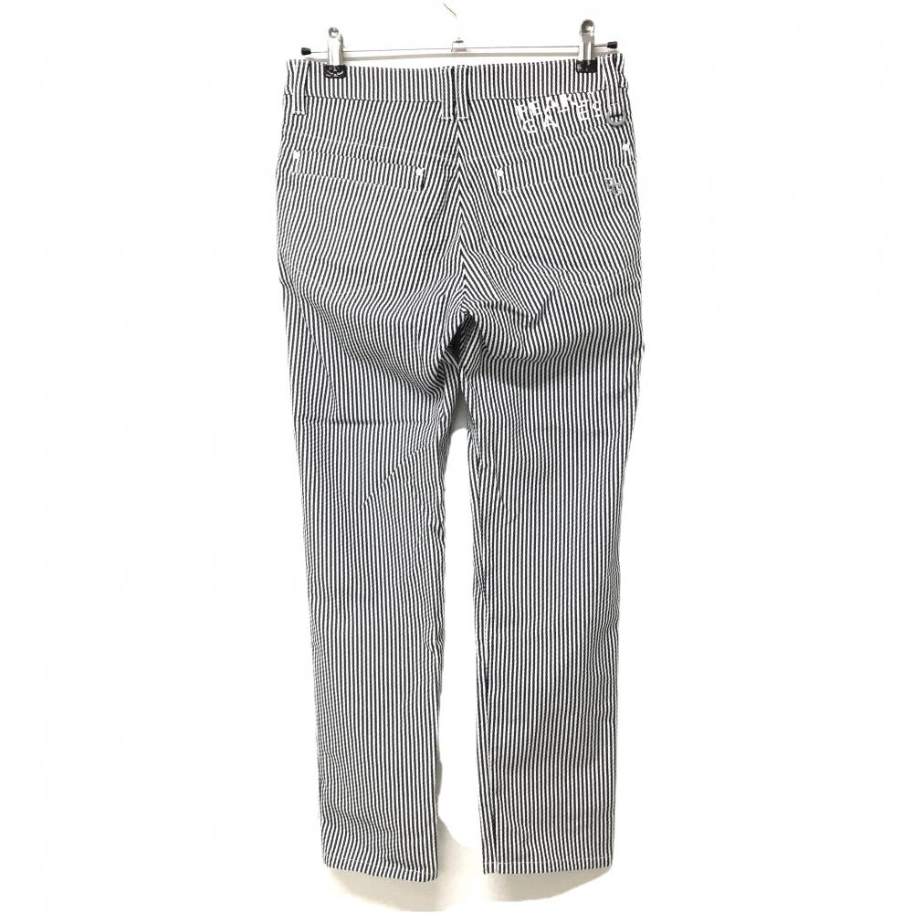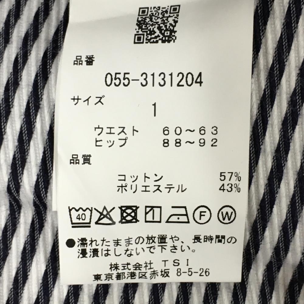 【美品】パーリーゲイツ パンツ 白×ネイビー ストライプ ティー装着可 レディース 1(M) ゴルフウェア 2023年モデル PEARLY GATES