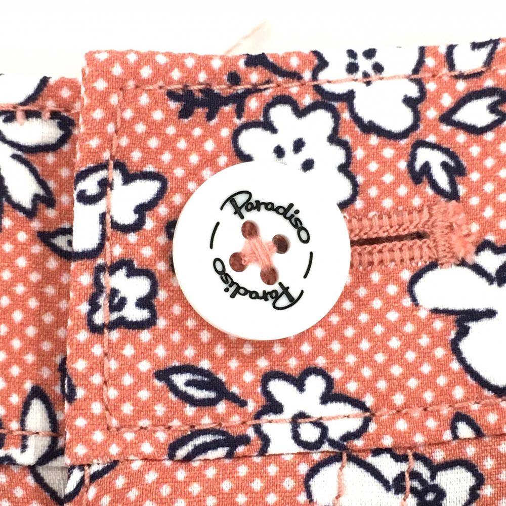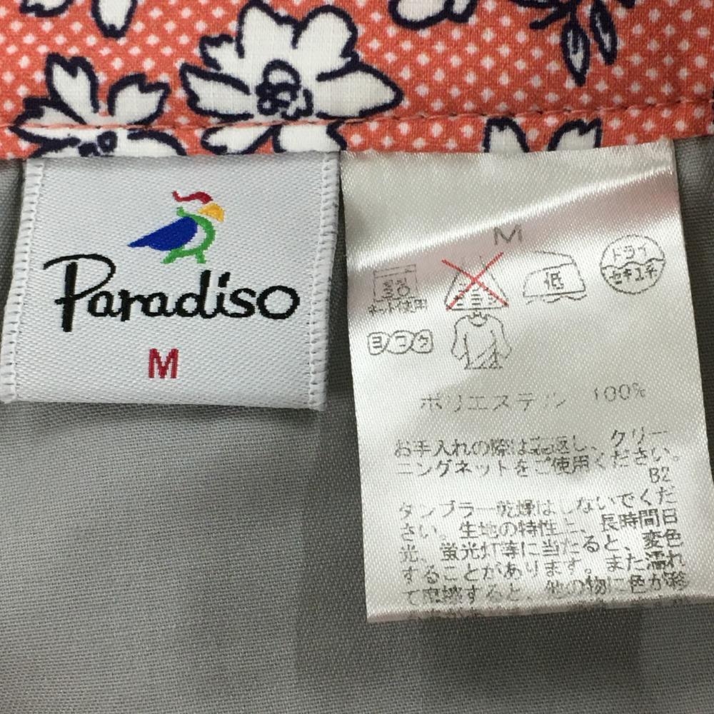 【超美品】パラディーゾ パンツ サーモンピンク系×白 チェック 花柄 レディース M ゴルフウェア Paradiso