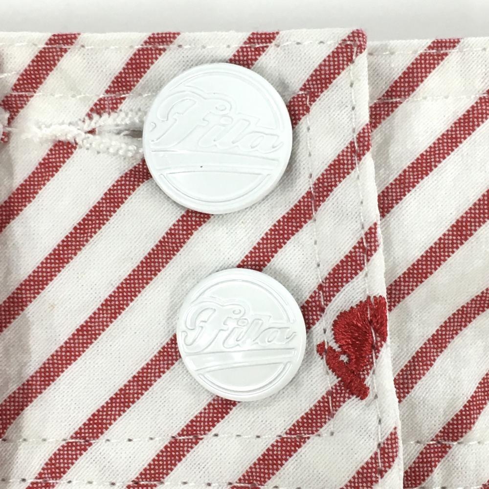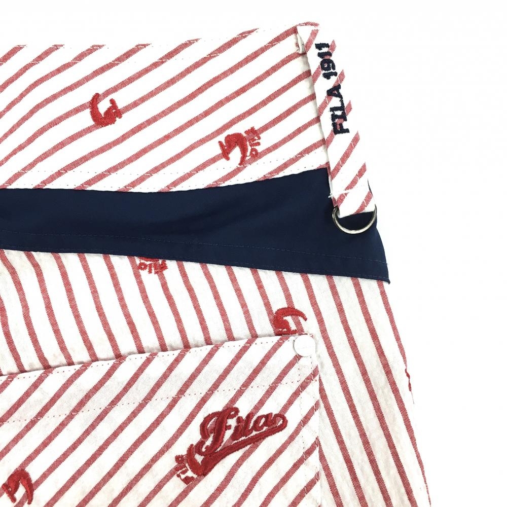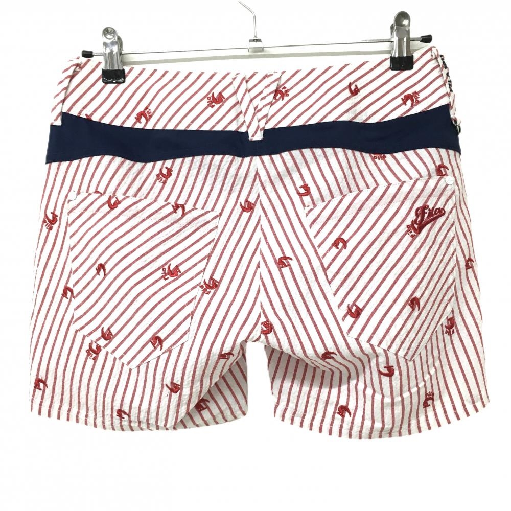 【超美品】フィラゴルフ ショートパンツ 白×レッド ストライプ 総柄刺しゅう レディース M ゴルフウェア FILA GOLF