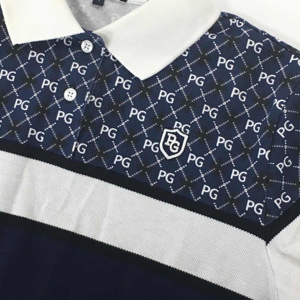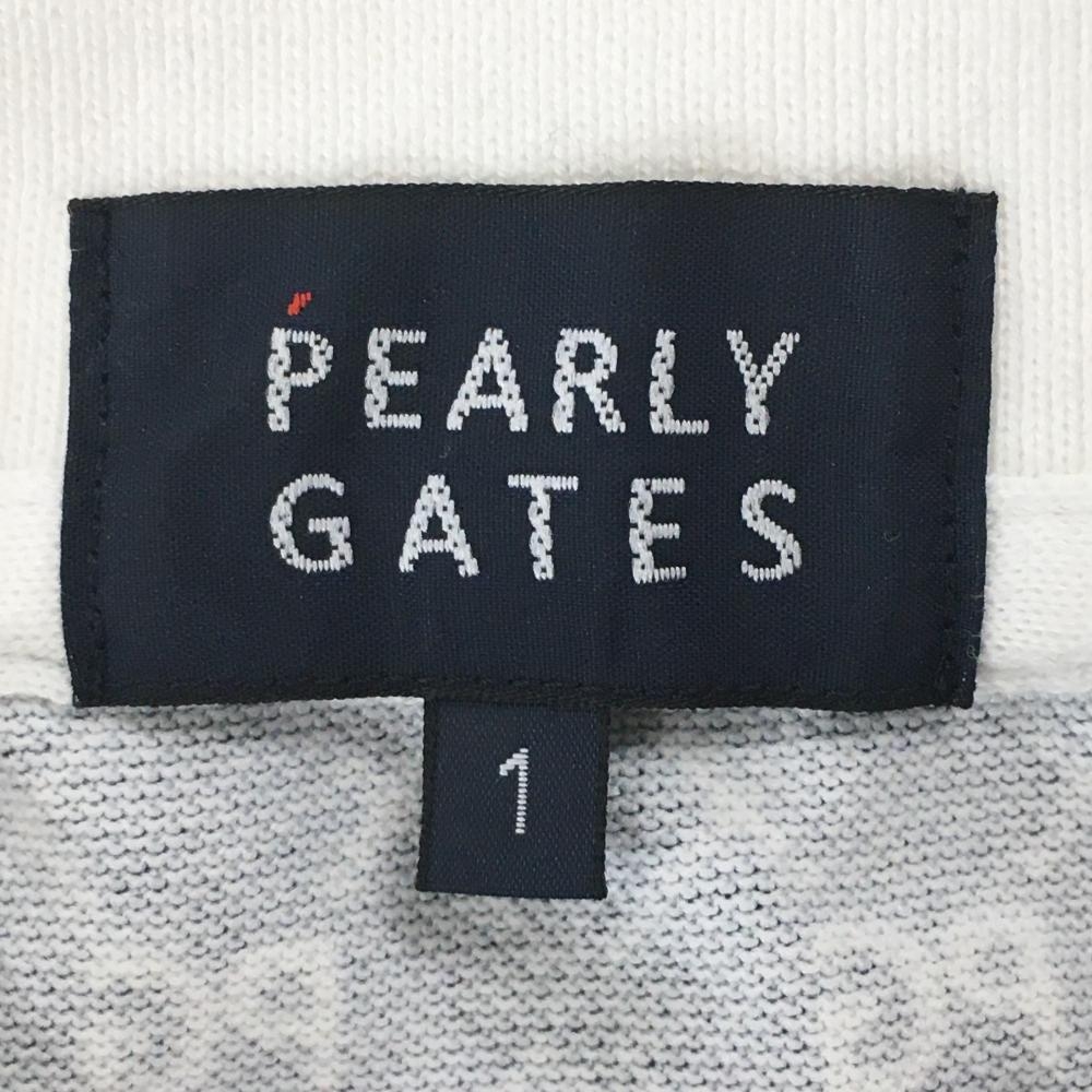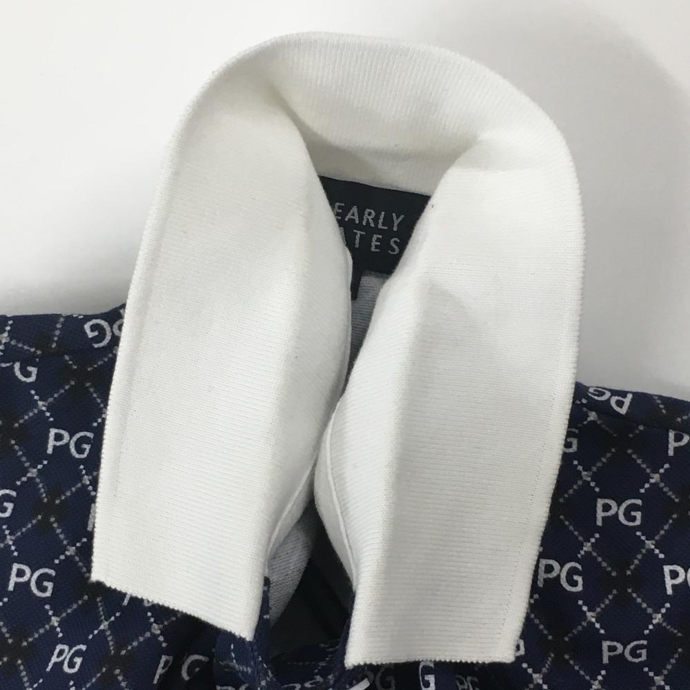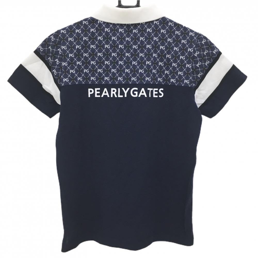 パーリーゲイツ 半袖ポロシャツ ネイビー×白 上部ロゴ総柄 レディース 1(M) ゴルフウェア PEARLY GATES