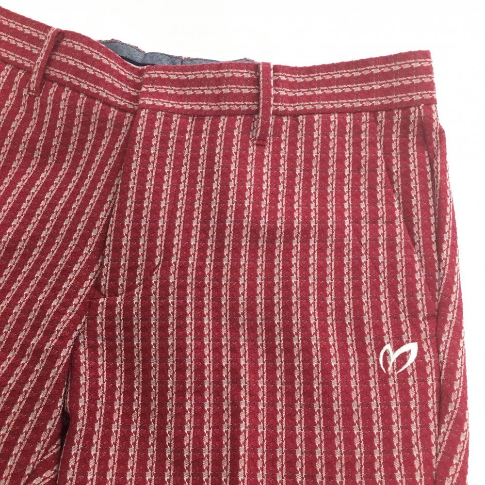 【超美品】マスターバニー パンツ レッド×白 織生地 ロゴ刺しゅう メンズ 4(M) ゴルフウェア MASTER BUNNY EDITION