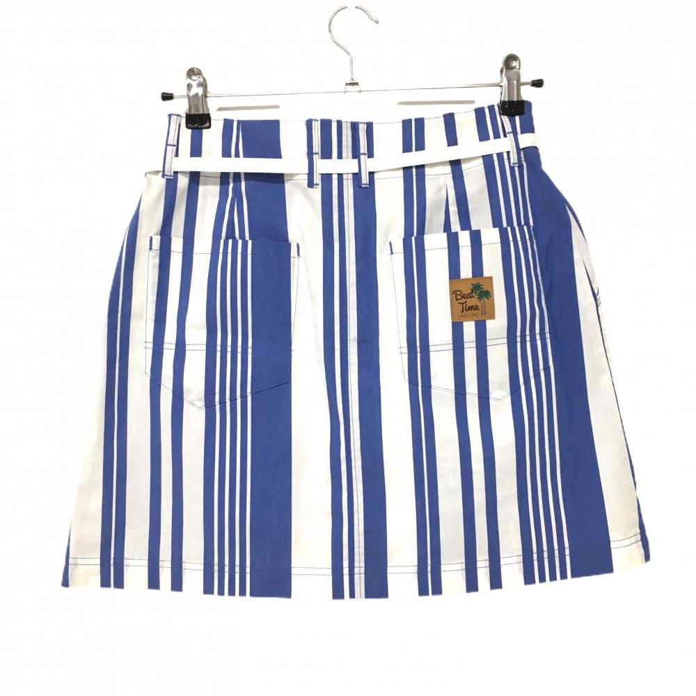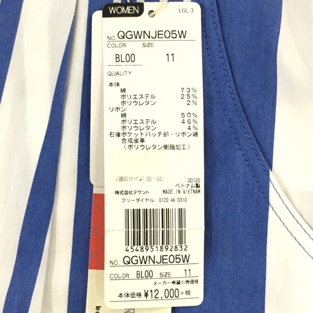 【新品】ルコック スカート 白×ブルー ストライプ ストレッチ 共布ベルト付 レディース 11 ゴルフウェア le coq sportif