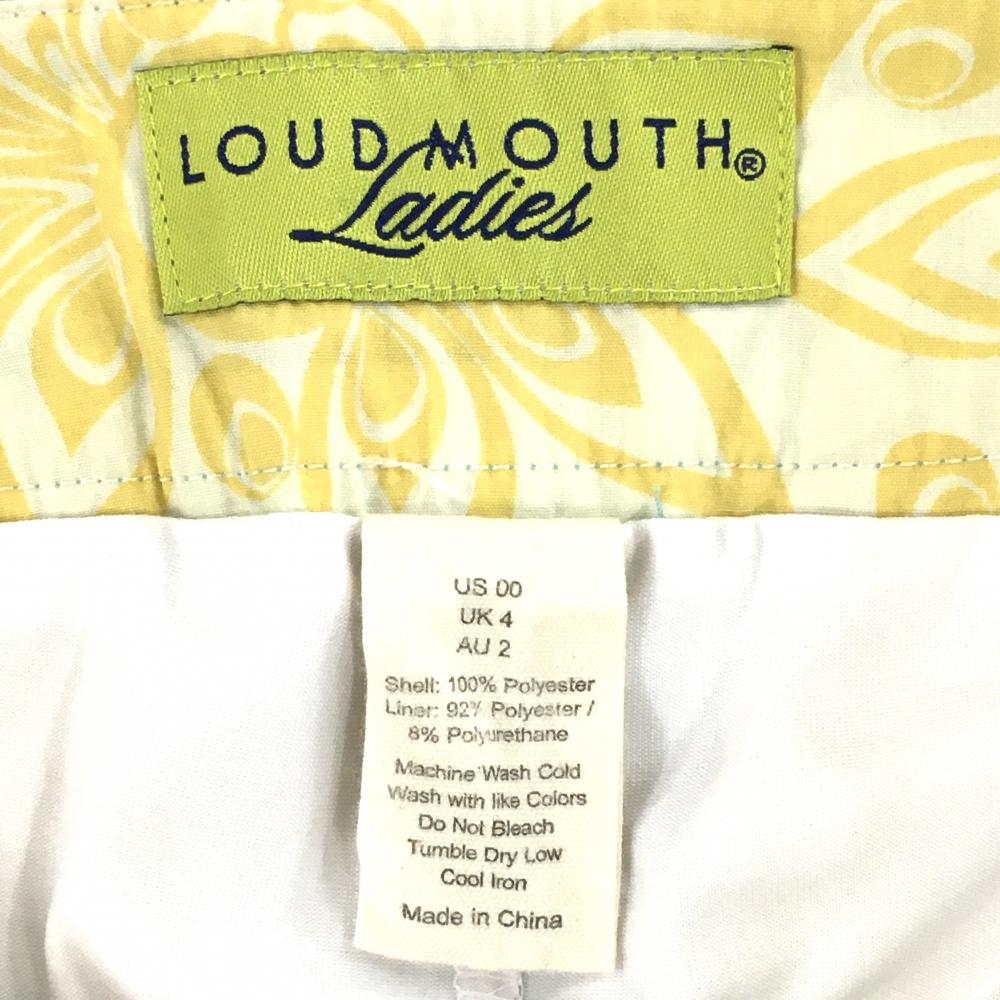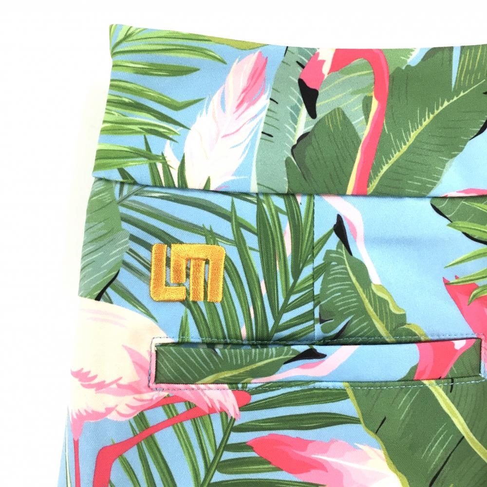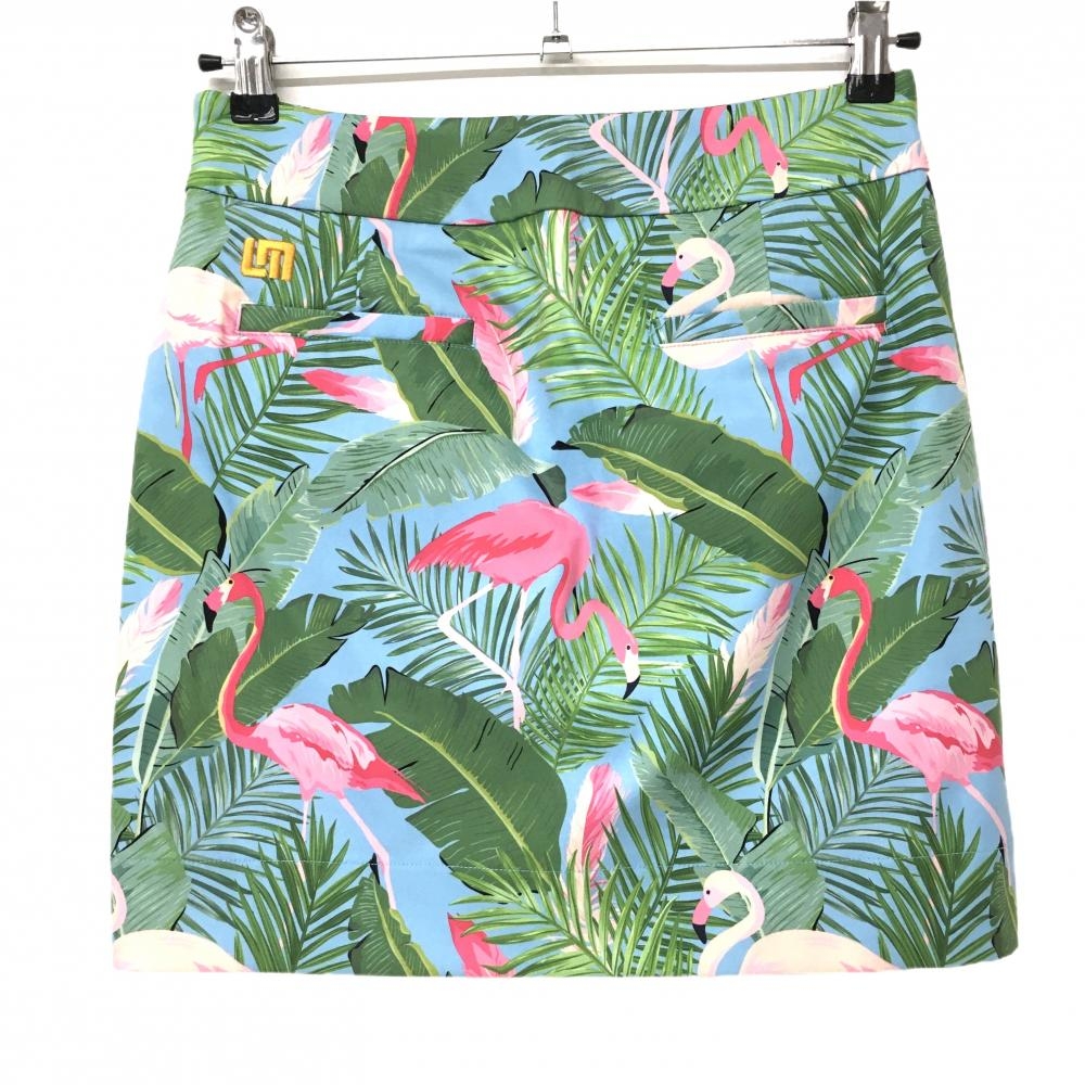 【超美品】ラウドマウス スカート ライトブルー×グリーン×ピンク フラミンゴ柄 リーフ柄 レディース US-00 ゴルフウェア LOUDMOUTH