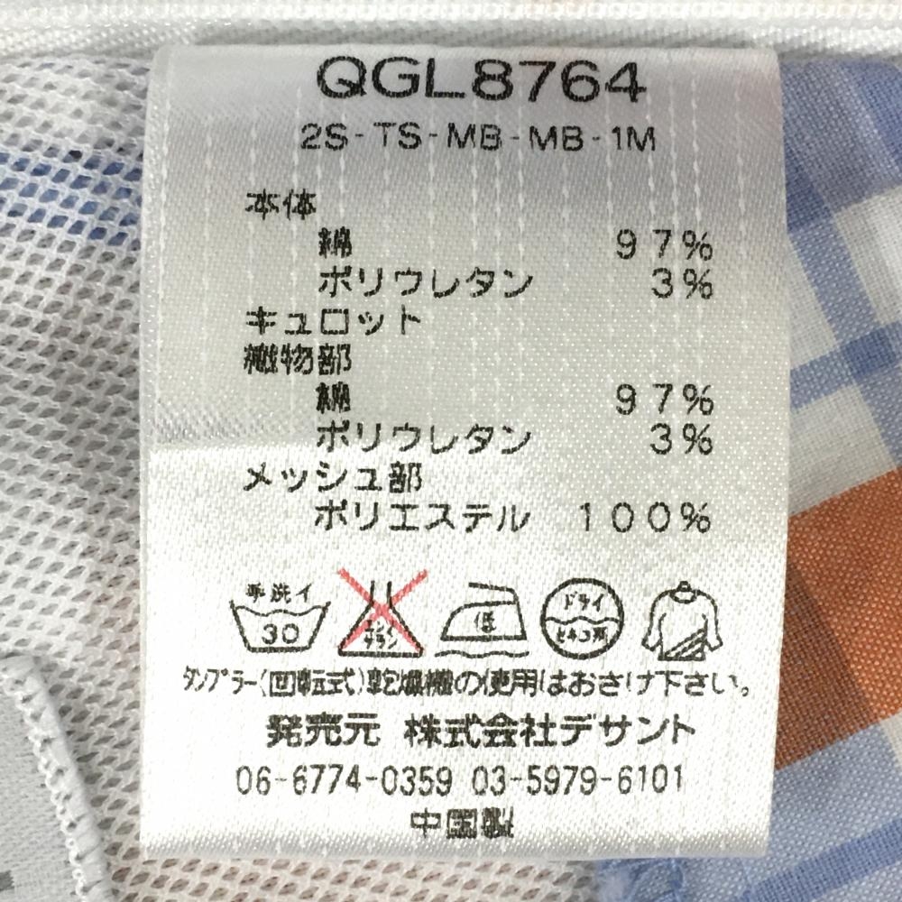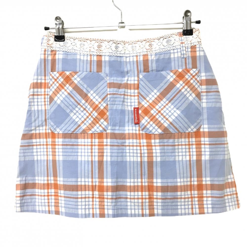 【美品】ルコック スカート ライトブルー×オレンジ チェック ウエストレース レディース 9 ゴルフウェア le coq sportif