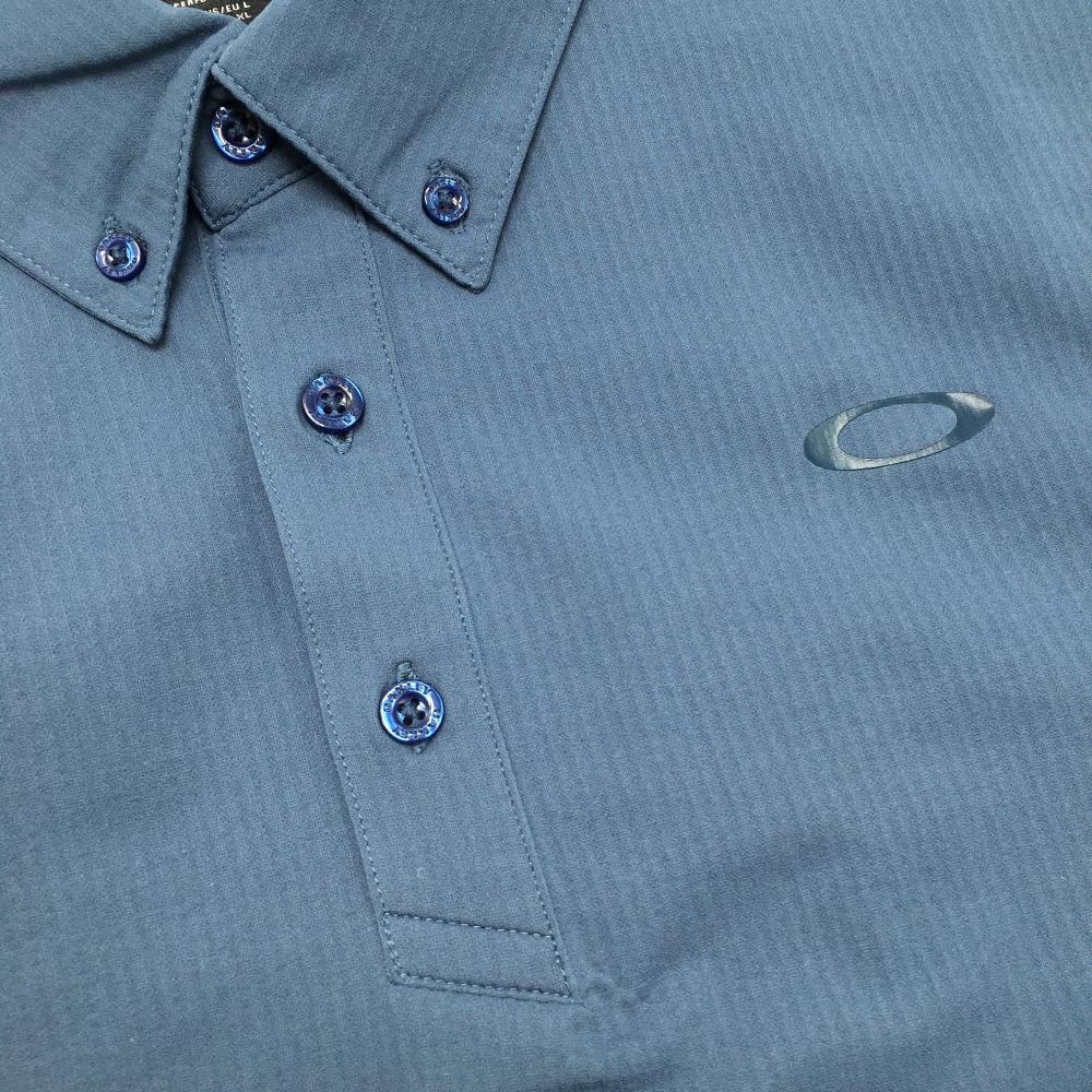 【超美品】オークリー 半袖ポロシャツ ネイビー系 ボタンダウン ストレッチ メンズ XL ゴルフウェア 2024年モデル Oakley