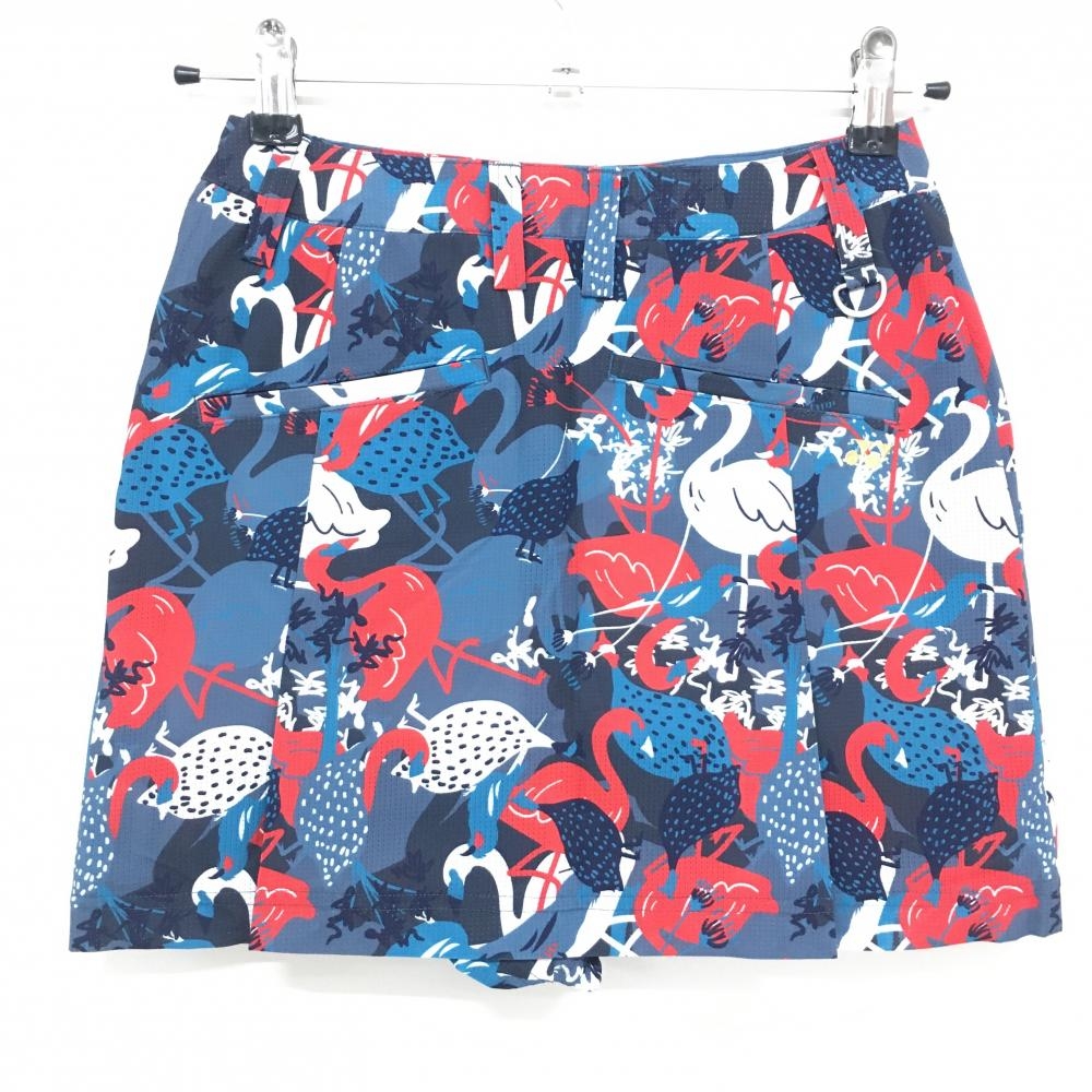 【超美品】ヨネックス スカート ネイビー系×マルチカラー 総柄 フラミンゴ 鳥 レディース SS ゴルフウェア 2024年モデル YONEX