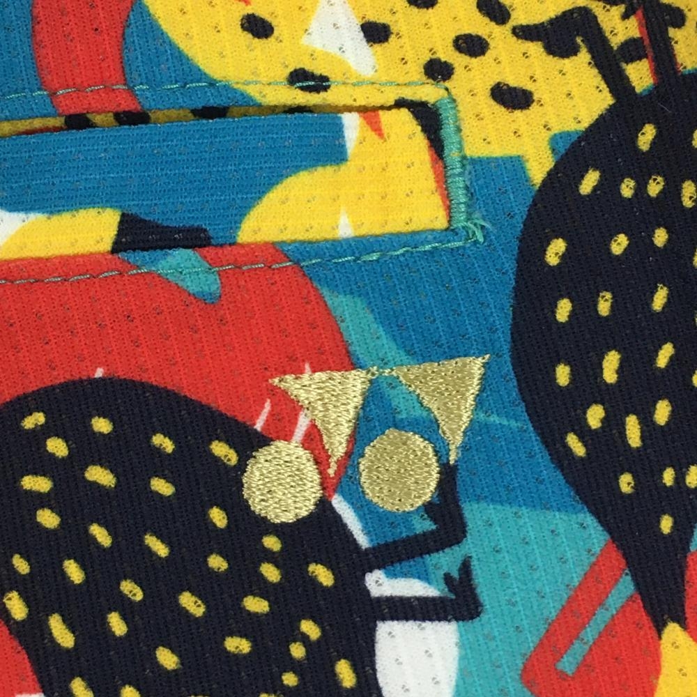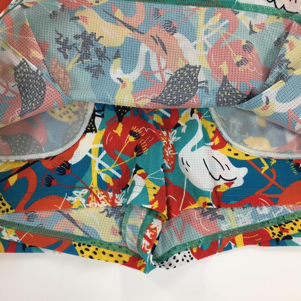 【超美品】ヨネックス スカート ライトブルー×マルチカラー 総柄 フラミンゴ 鳥 レディース SS ゴルフウェア 2024年モデル YONEX