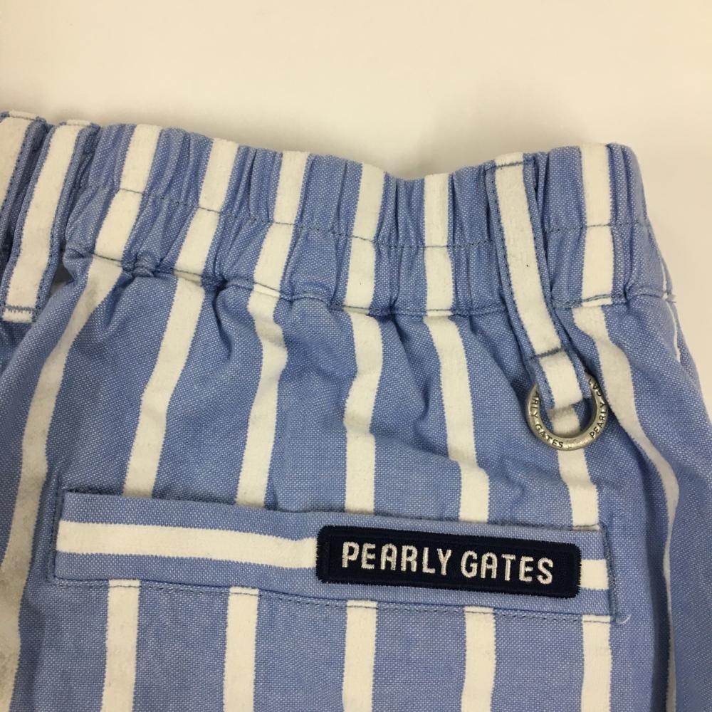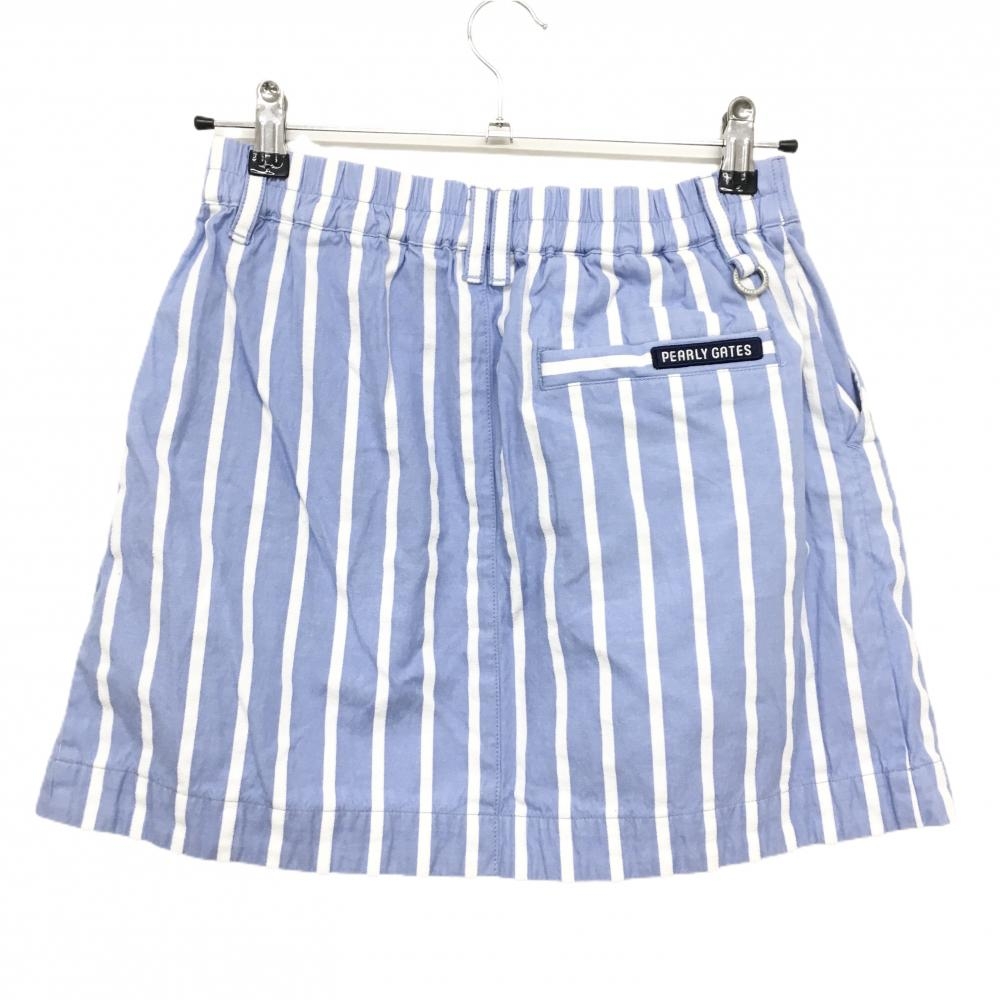【美品】パーリーゲイツ スカート ライトブルー×白 ストライプ コットン100% レディース 0(S) ゴルフウェア PEARLY GATES