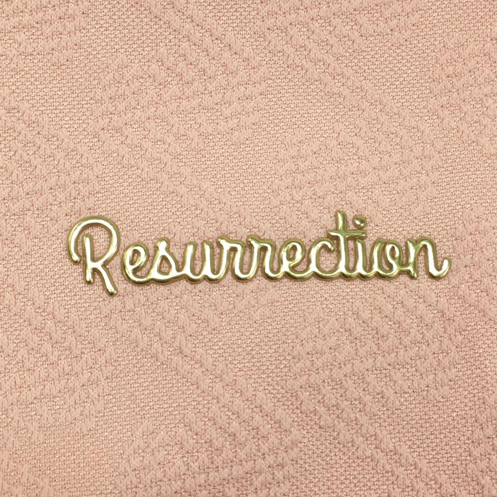 【美品】レザレクション 長袖ハイネックシャツ ライトピンク 総柄織生地 立体ロゴ レディース S ゴルフウェア 2024年モデル Resurrection