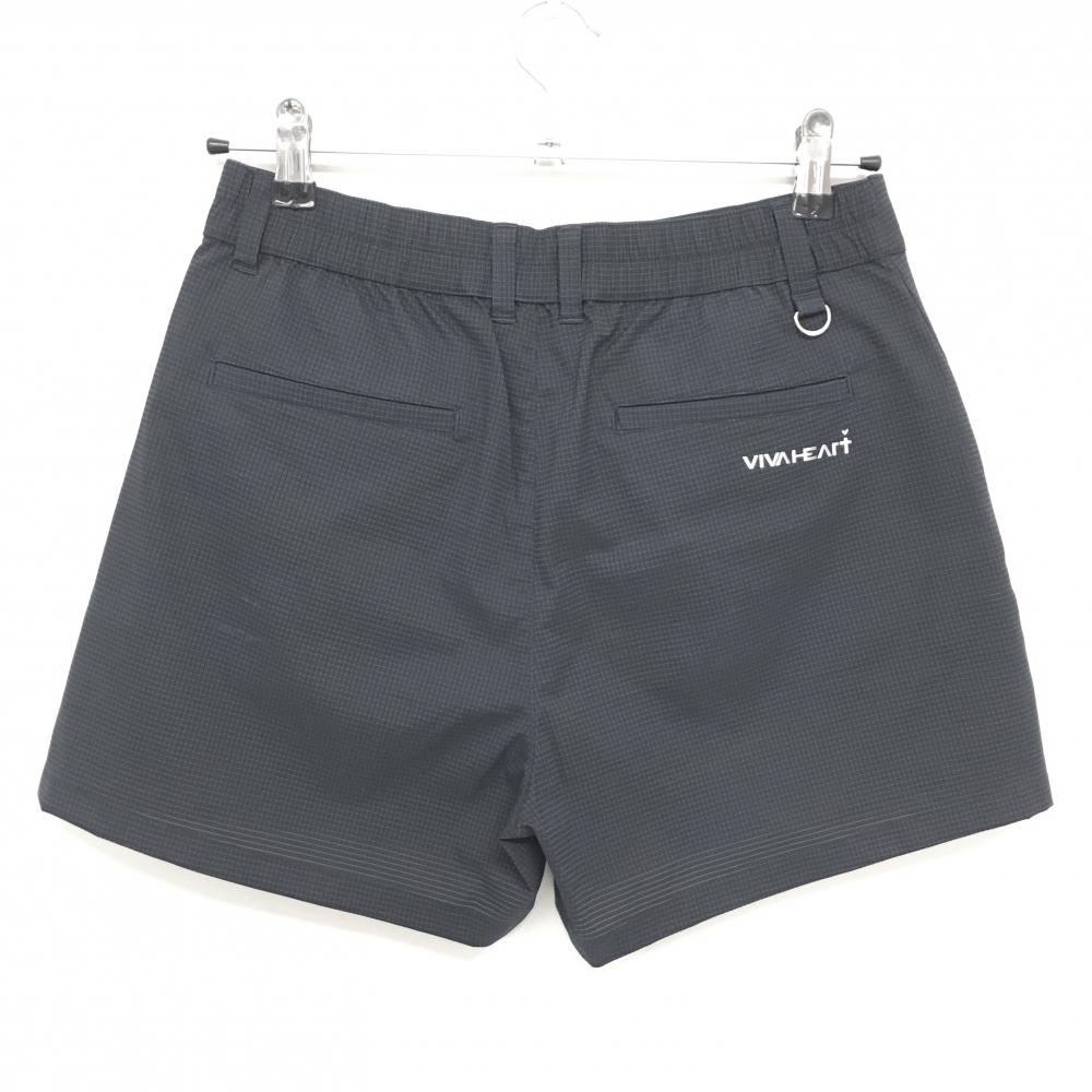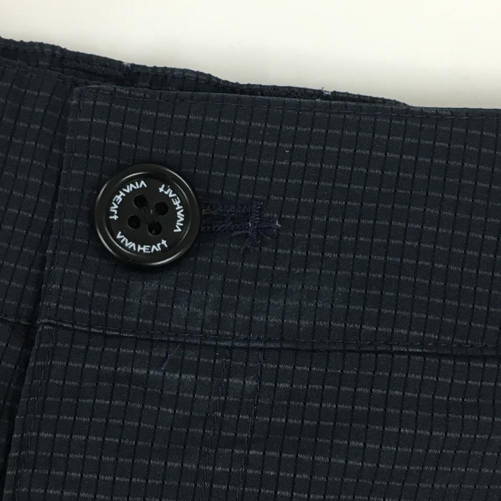 【超美品】ビバハート ショートパンツ ネイビー シルバーライン 格子織生地 バックロゴ レディース 42(L) ゴルフウェア VIVA HEART