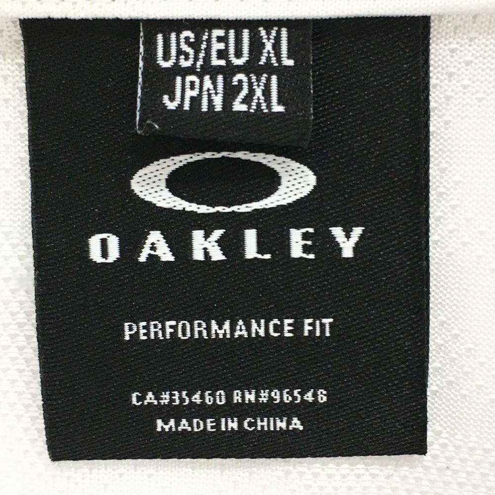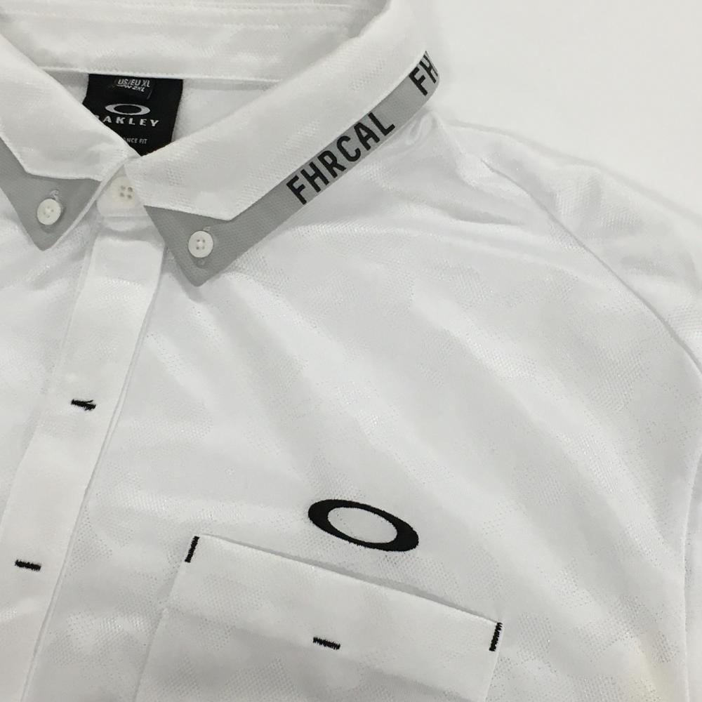 【美品】オークリー 半袖ポロシャツ 白 総柄地模様 ボタンダウン メンズ 2XL ゴルフウェア 2023年モデル Oakley