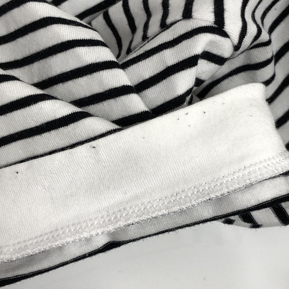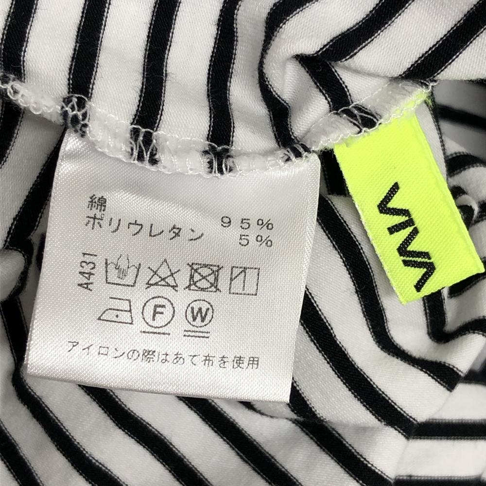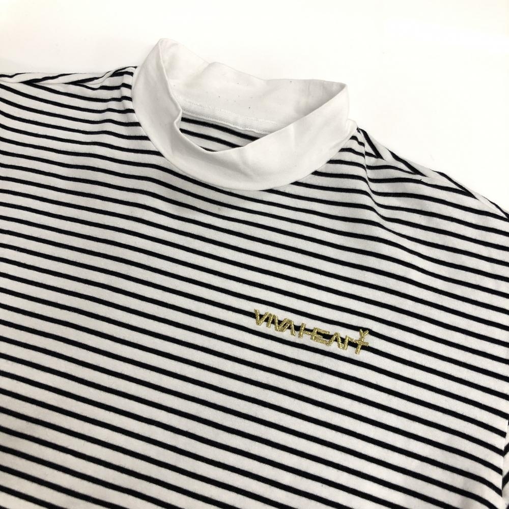 【美品】ビバハート 半袖ハイネックシャツ 白×黒 ボーダー ネック・袖口内側毛羽立ち少 メンズ 48(M) ゴルフウェア VIVA HEART