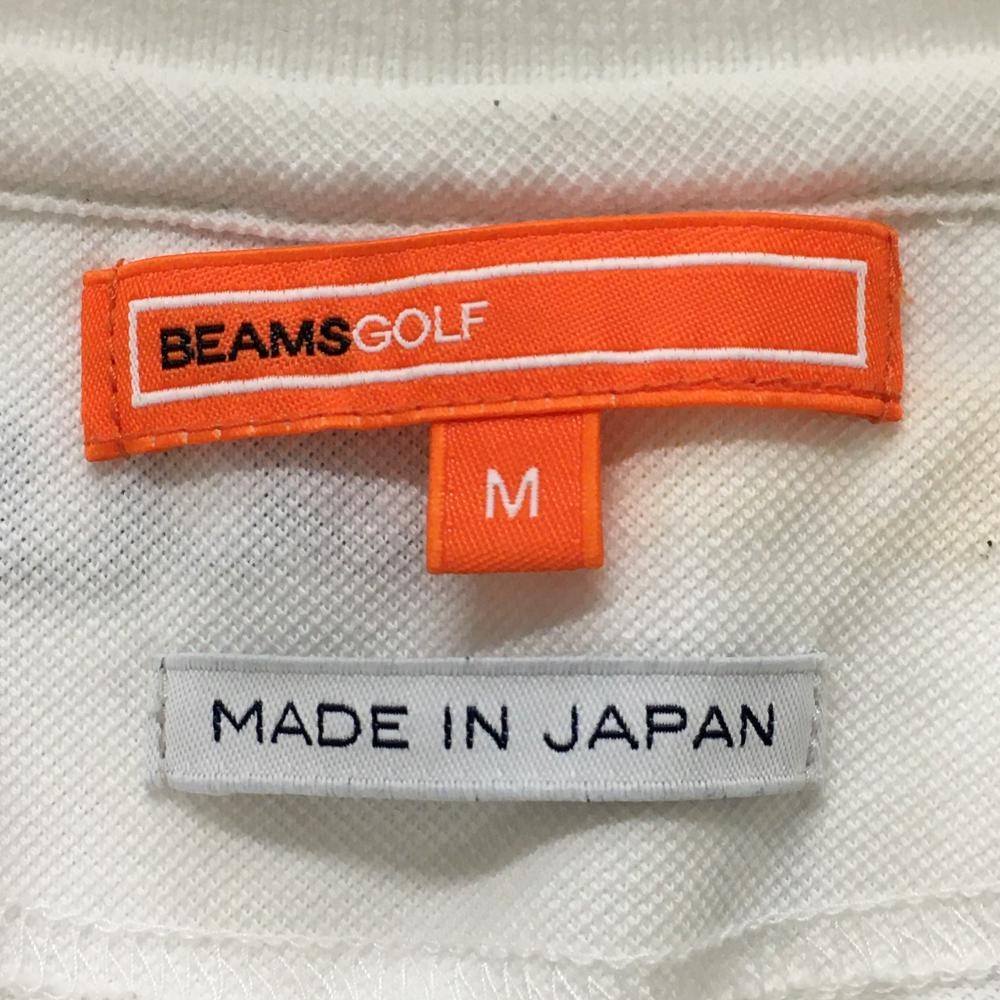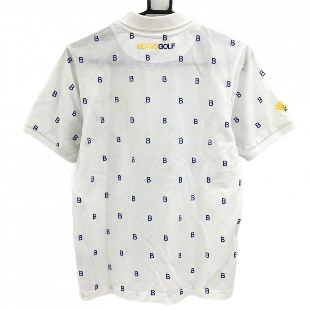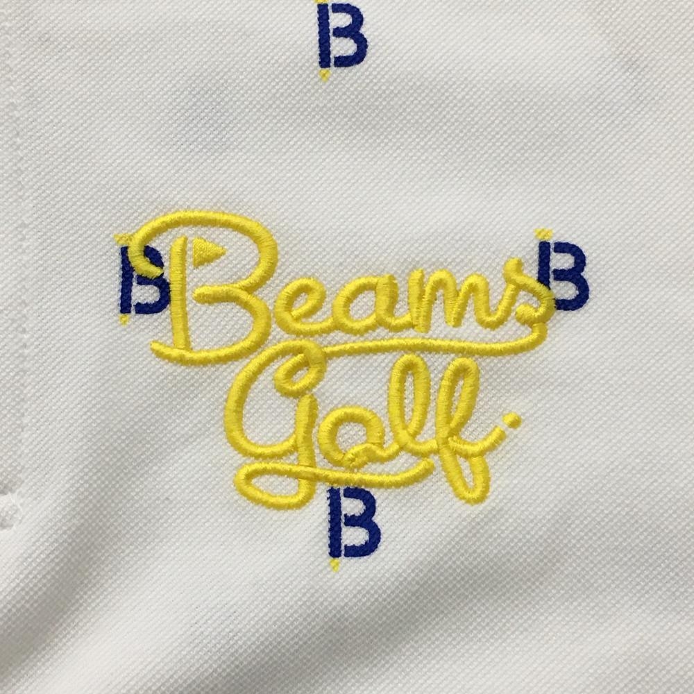 ビームスゴルフ 半袖ポロシャツ 白×ブルー ロゴ総柄 メンズ M ゴルフウェア BEAMS GOLF