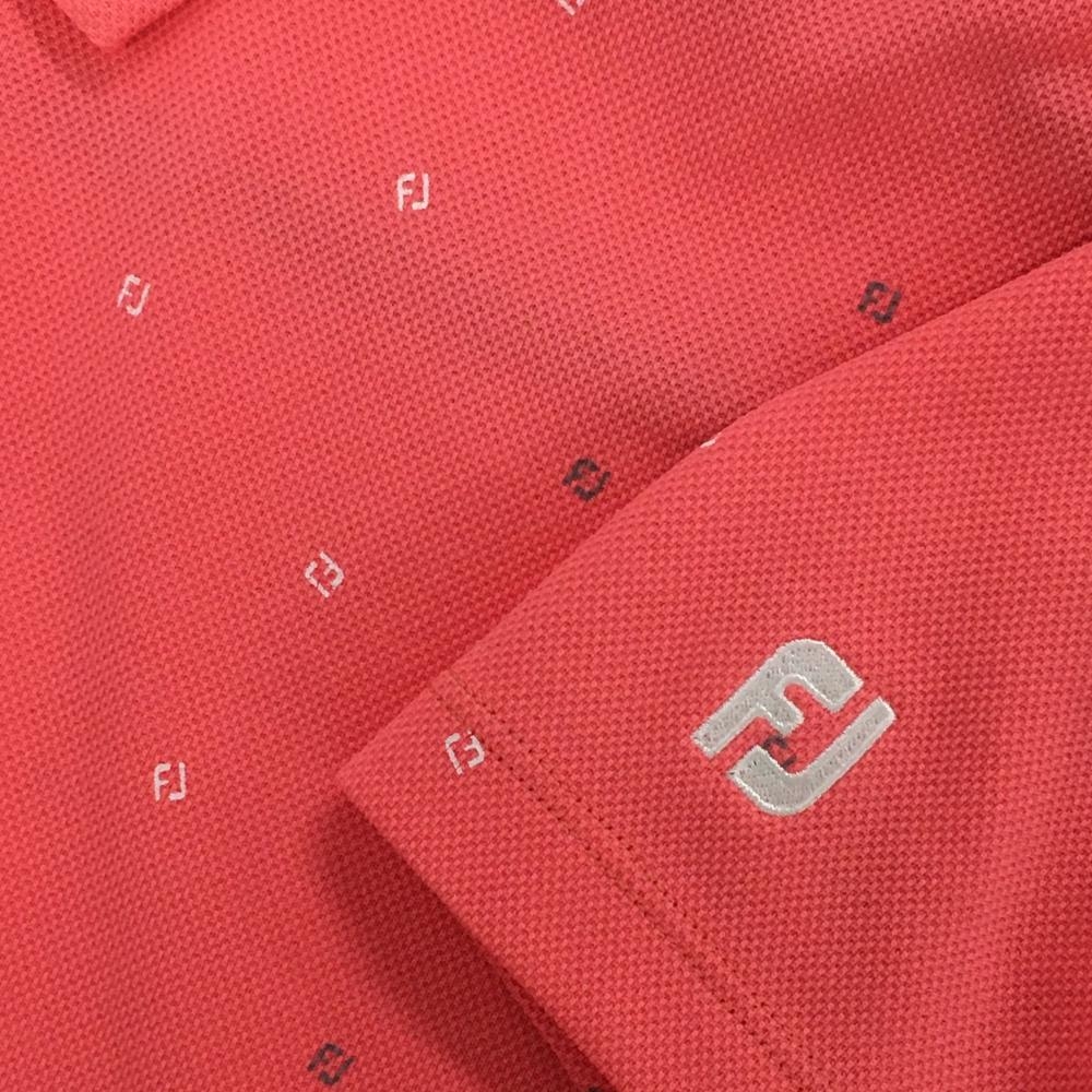 【超美品】フットジョイ 半袖ポロシャツ ピンク×白 ロゴ総柄 レディース M ゴルフウェア FootJoy