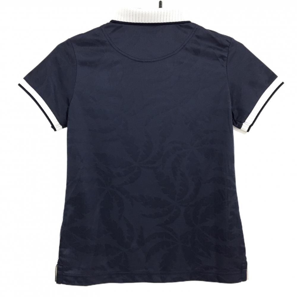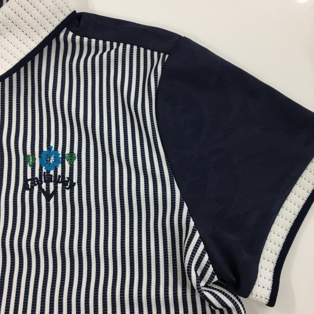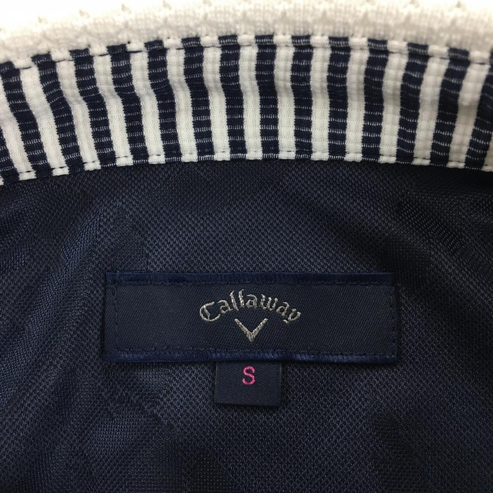 【超美品】キャロウェイ 半袖ポロシャツ ネイビー×白 前身頃ストライプ 背面地模様 レディース S ゴルフウェア Callaway