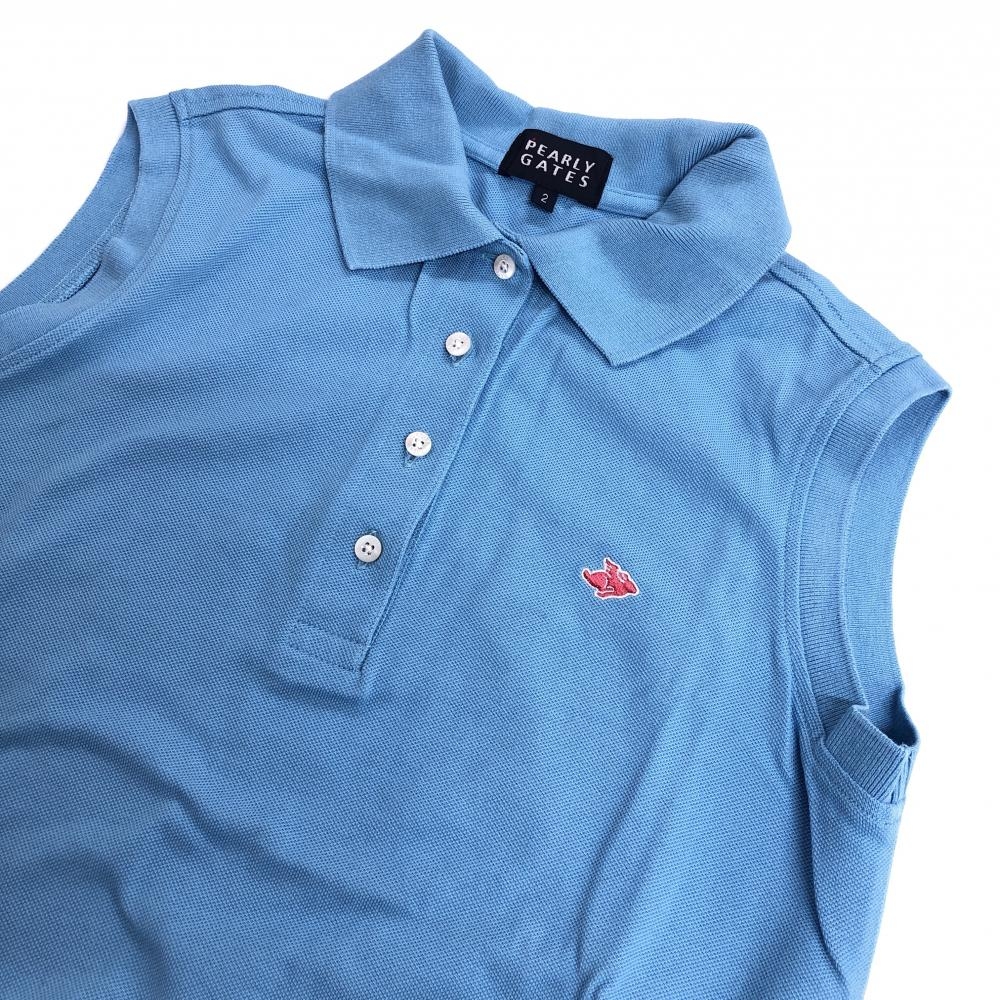パーリーゲイツ ノースリーブポロシャツ ライトブルー コットン100% フライングラビット レディース 2(L) ゴルフウェア PEARLY GATES