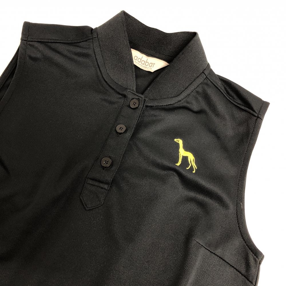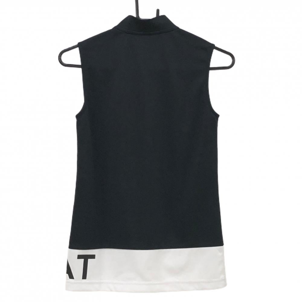 【超美品】アダバット ノースリーブポロシャツ 黒×白 裾ロゴ レディース 36(S) ゴルフウェア adabat