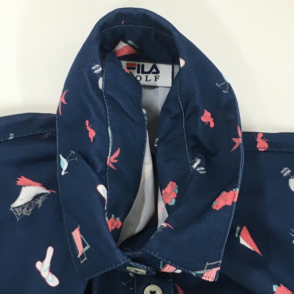【美品】フィラゴルフ 半袖ポロワンピース ネイビー×ピンク 総柄 夏 ウエストゴム レディース M ゴルフウェア FILA GOLF