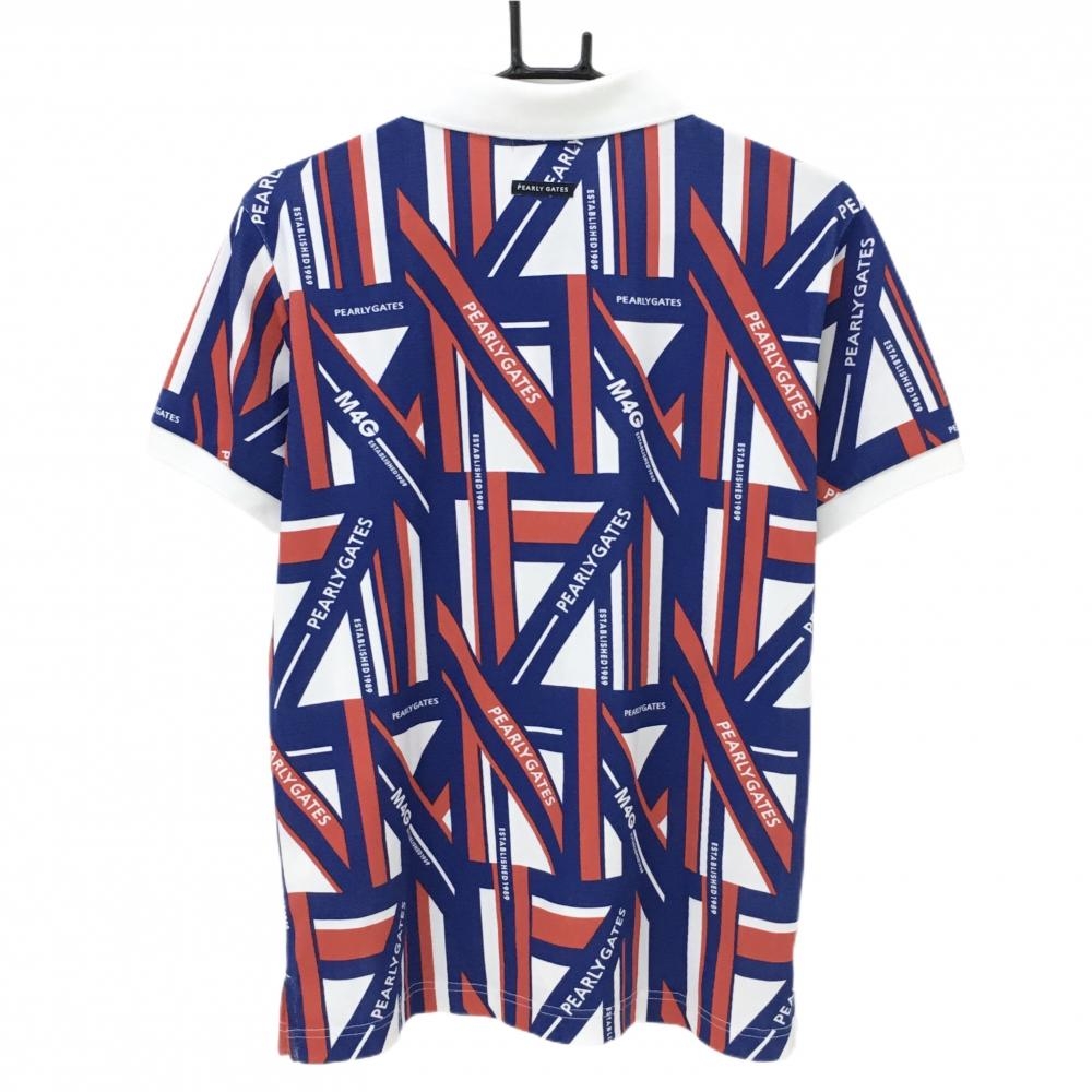 パーリーゲイツ 半袖ポロシャツ 白×ブルー 総柄 メンズ 4(M) ゴルフウェア PEARLY GATES