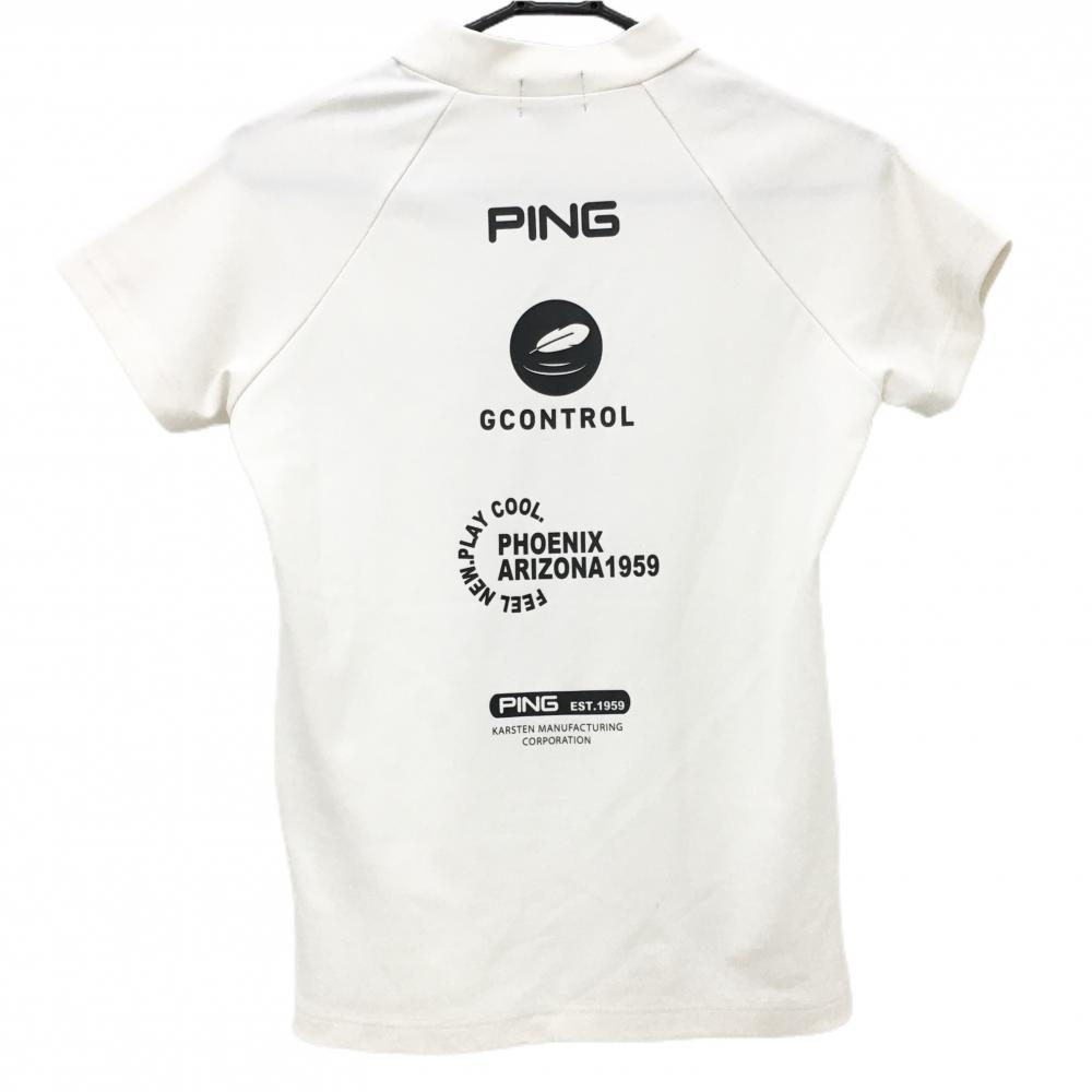ピン 半袖ハイネックシャツ 白 背面ロゴ レディース S ゴルフウェア 2023年モデル PING