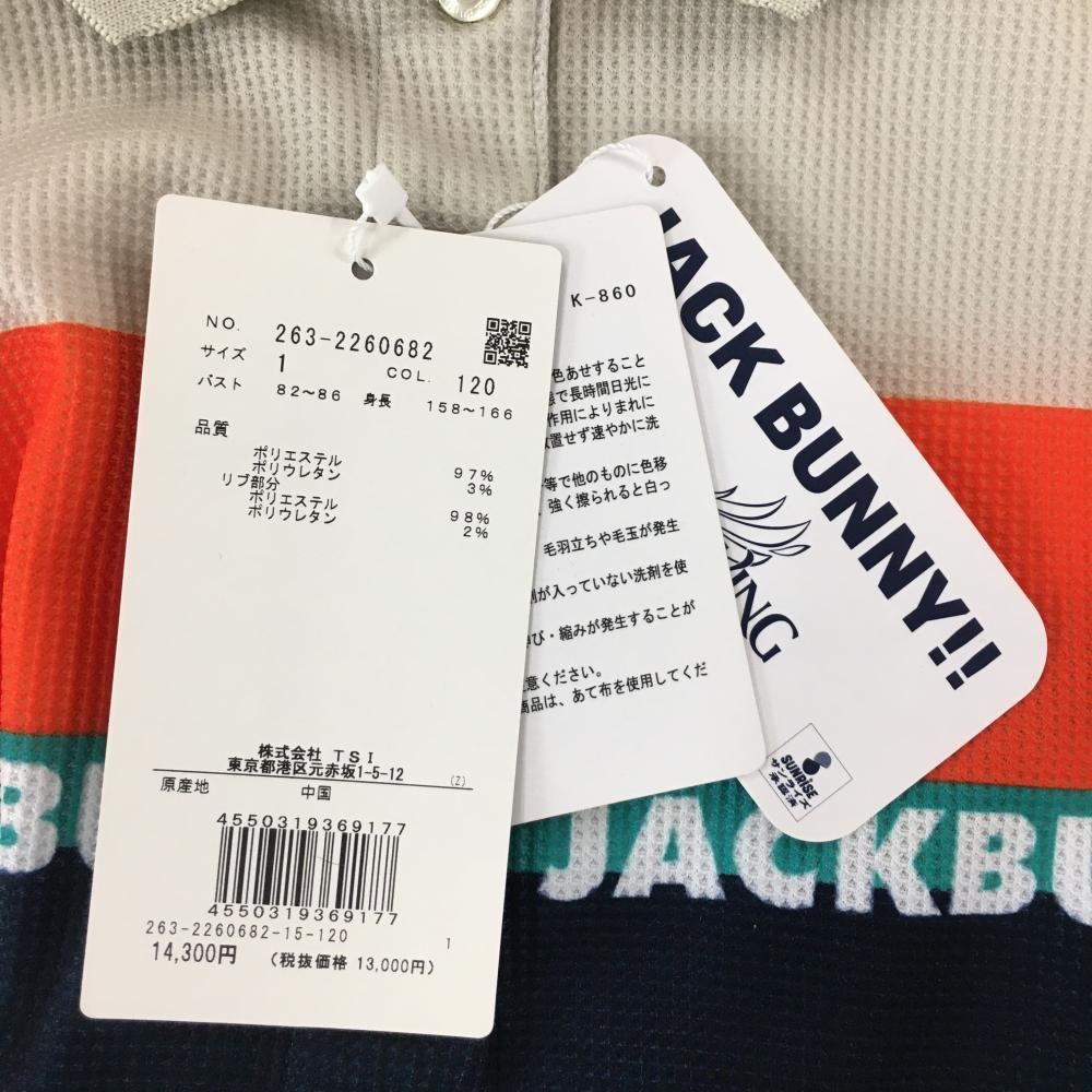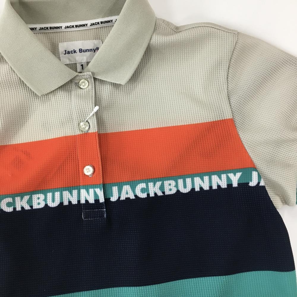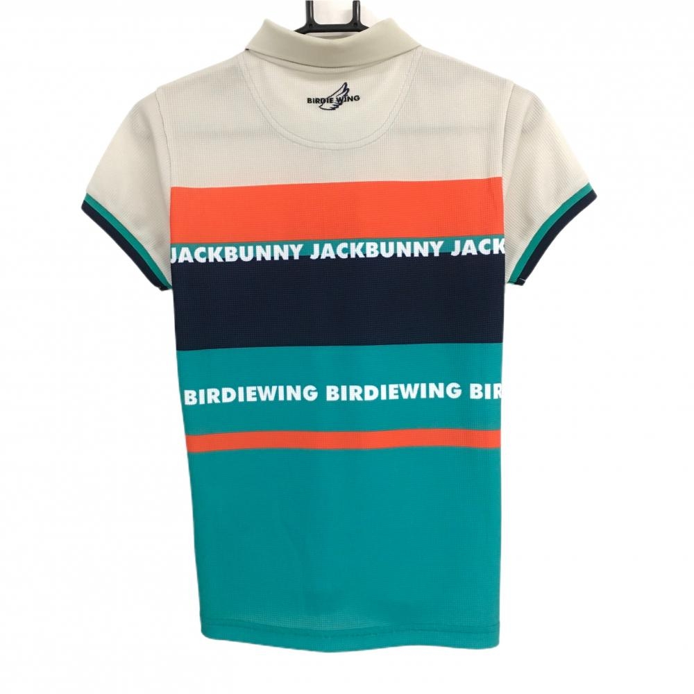【新品】ジャックバニー×BIRDIE WING 半袖ポロシャツ グリーン×ベージュ×オレンジ レディース 1(M) ゴルフウェア Jack Bunny