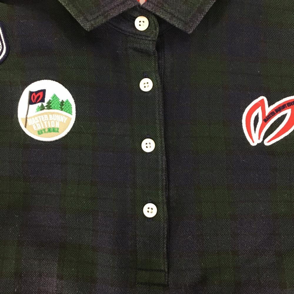 マスターバニー 半袖ポロシャツ ネイビー×グリーン チェック ワッペン レディース 1(M) ゴルフウェア MASTER BUNNY EDITION