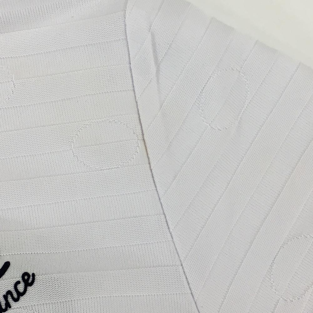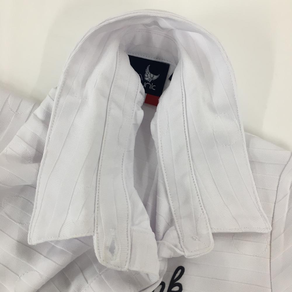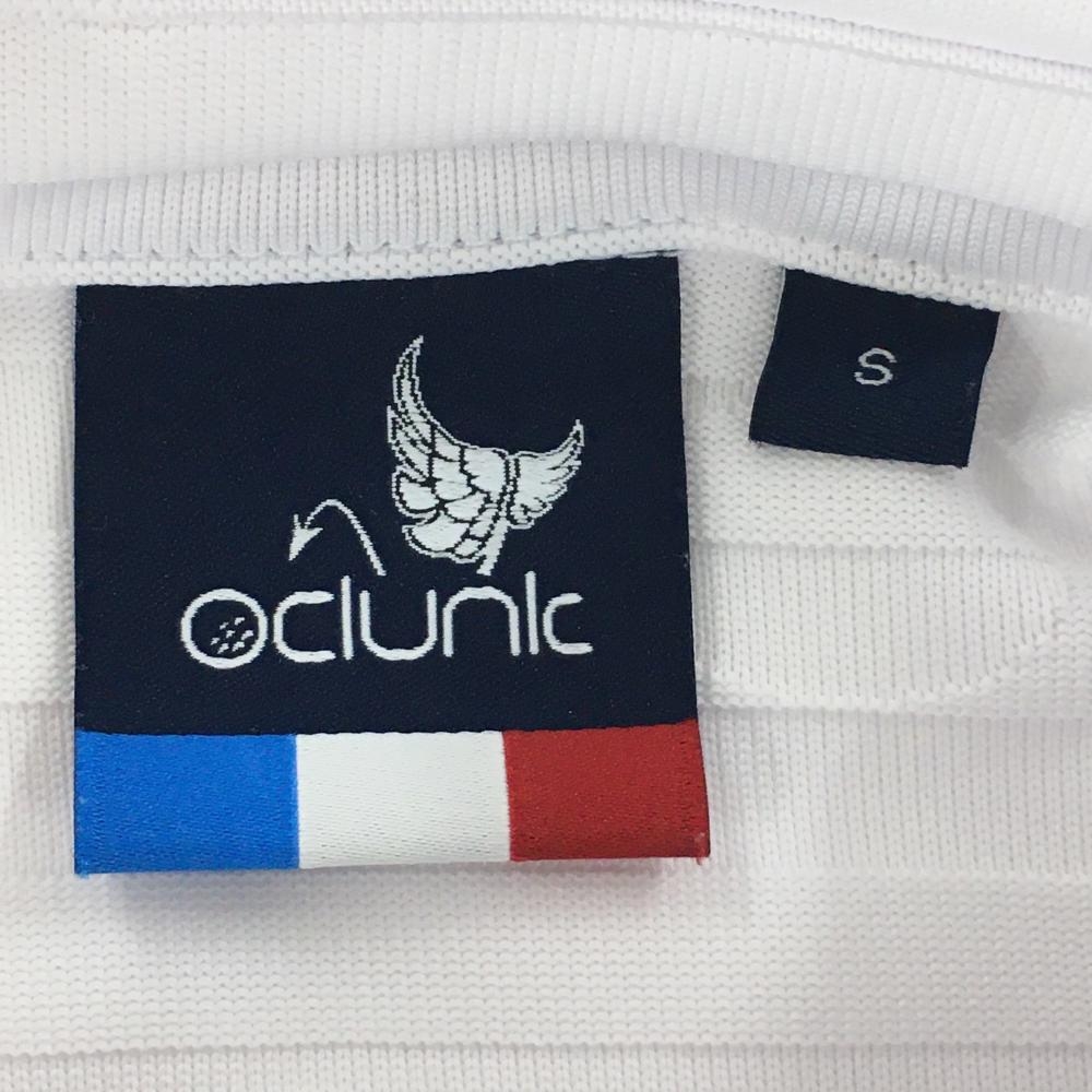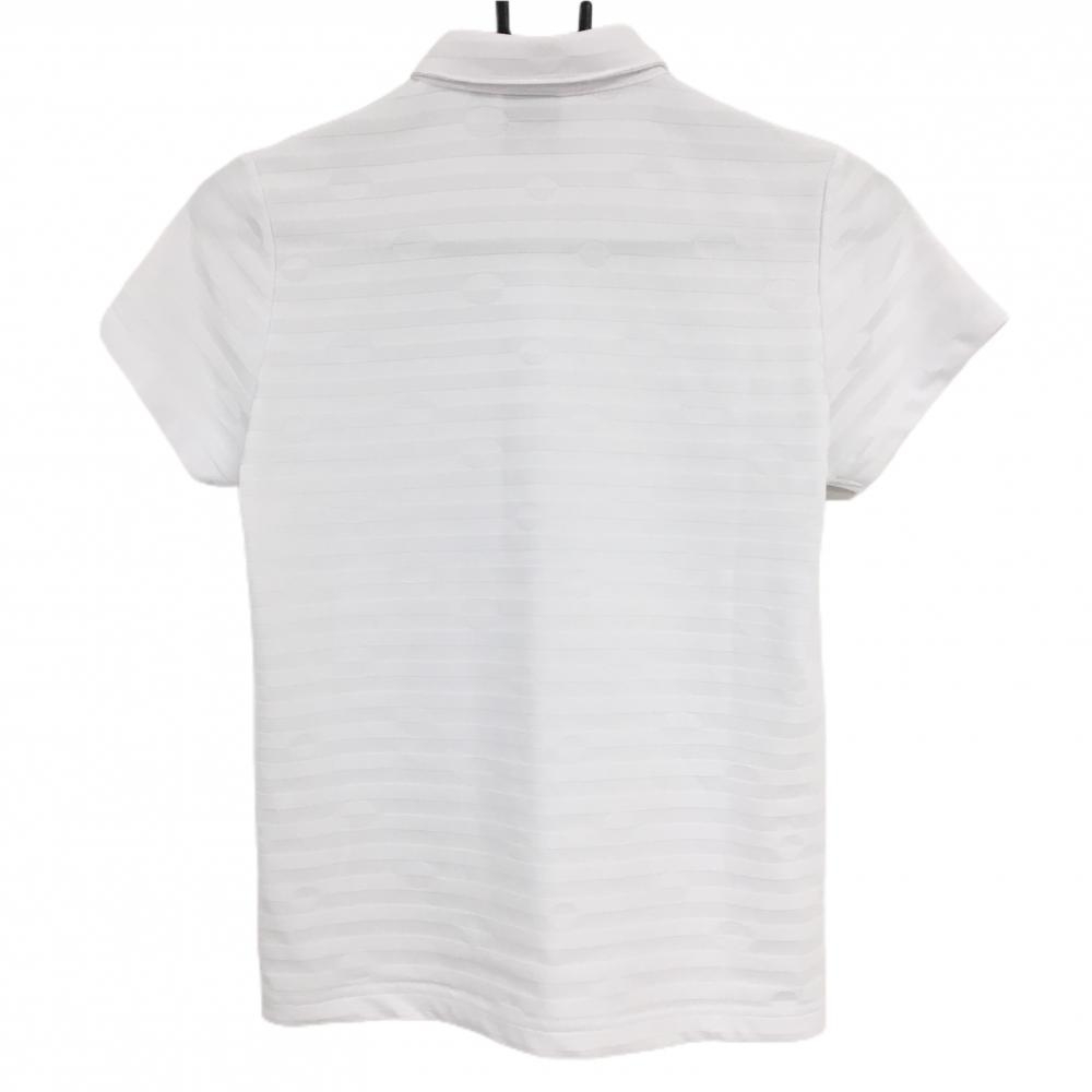 【美品】クランク 半袖ポロシャツ 白 ボーダー織生地 ドット ロゴネイビー レディース S ゴルフウェア CLUNK