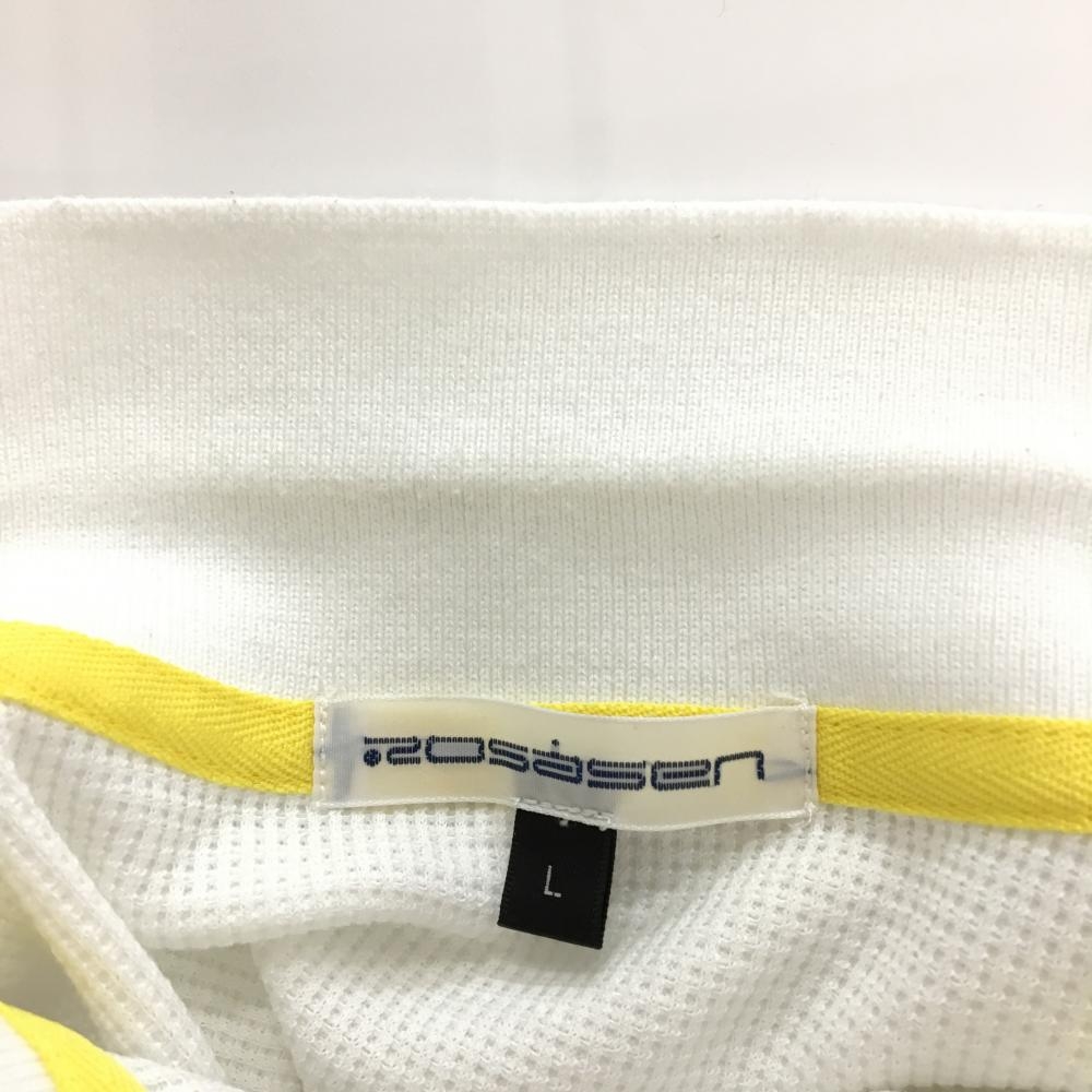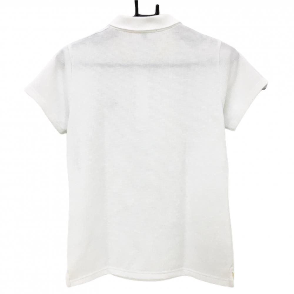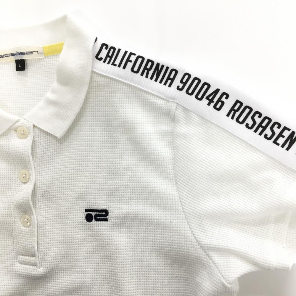 ロサーセン 半袖ポロシャツ 白×黒 ワッフル生地 肩英文字ライン レディース L ゴルフウェア Rosasen