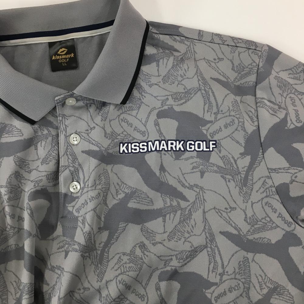【美品】キスマークゴルフ 半袖ポロシャツ グレー 鳥柄 メンズ LL ゴルフウェア kissmark
